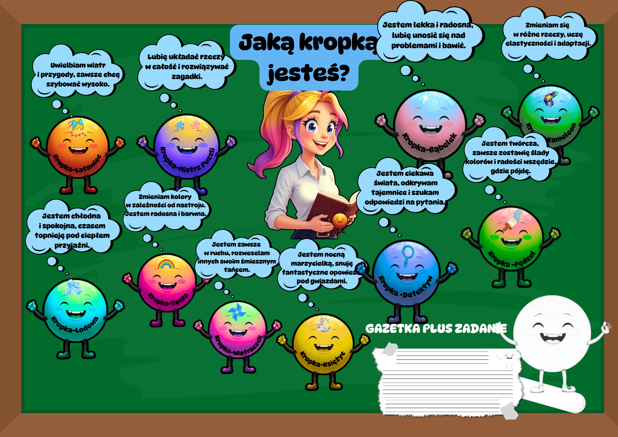 Przygotowałam dla Was materiał „Jaką kropką jesteś?”, który: