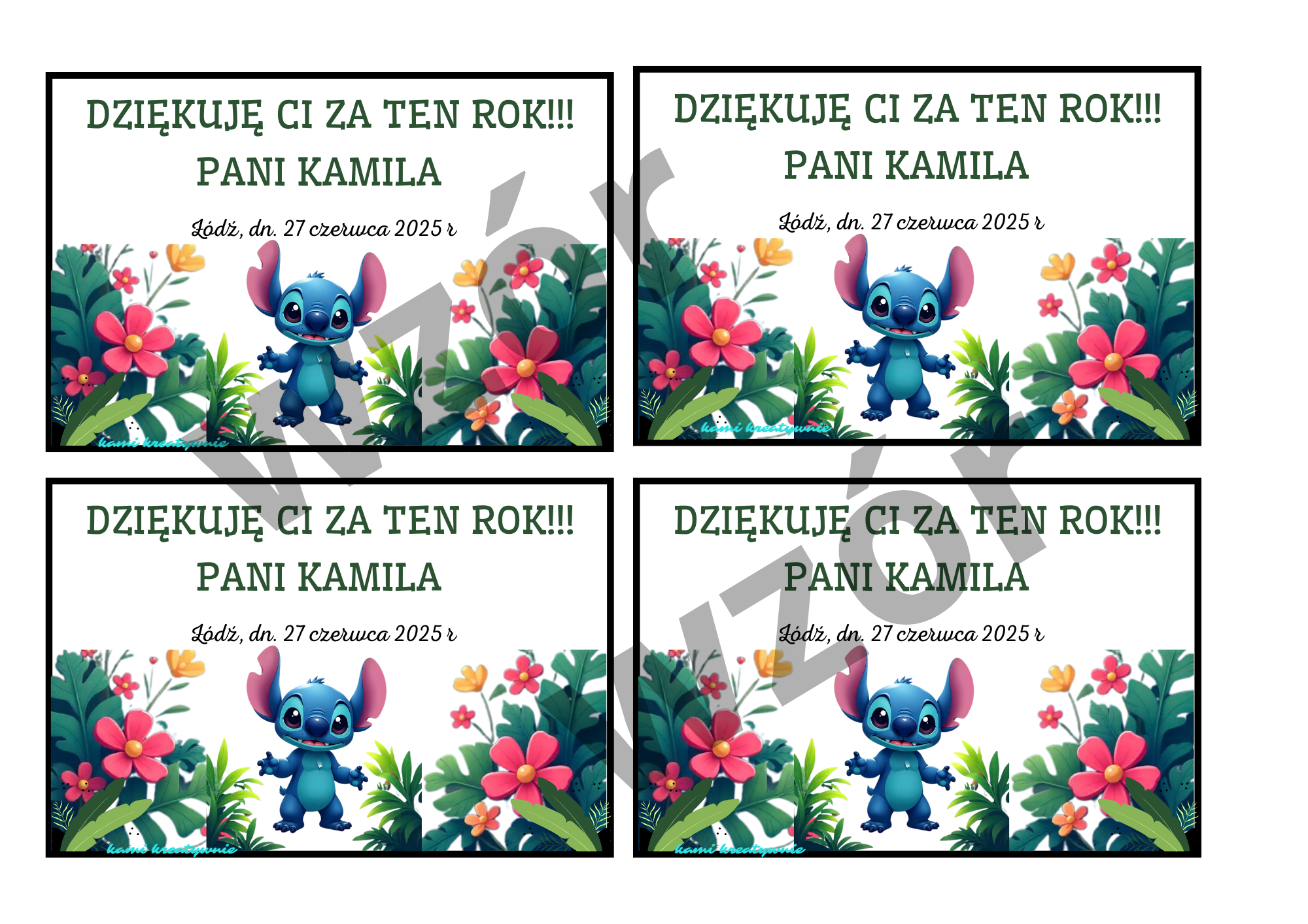 Bileciki z podziękowaniem z ulubionym stworkiem stworzonym przez AI.