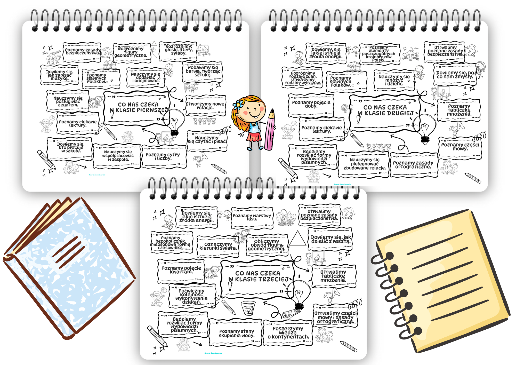 Zajrzyj, pobierz, wykorzystaj – i zobacz, jak wizualne notatki mogą ułatwić naukę oraz planowanie edukacyjnej przygody od pierwszej do trzeciej klasy! 🎒✏️