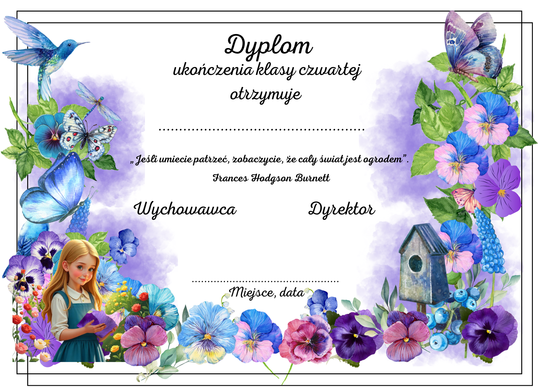 W materiale dyplomy ukończenia klas 4-8 format a4 w dwóch konfiguracjach: