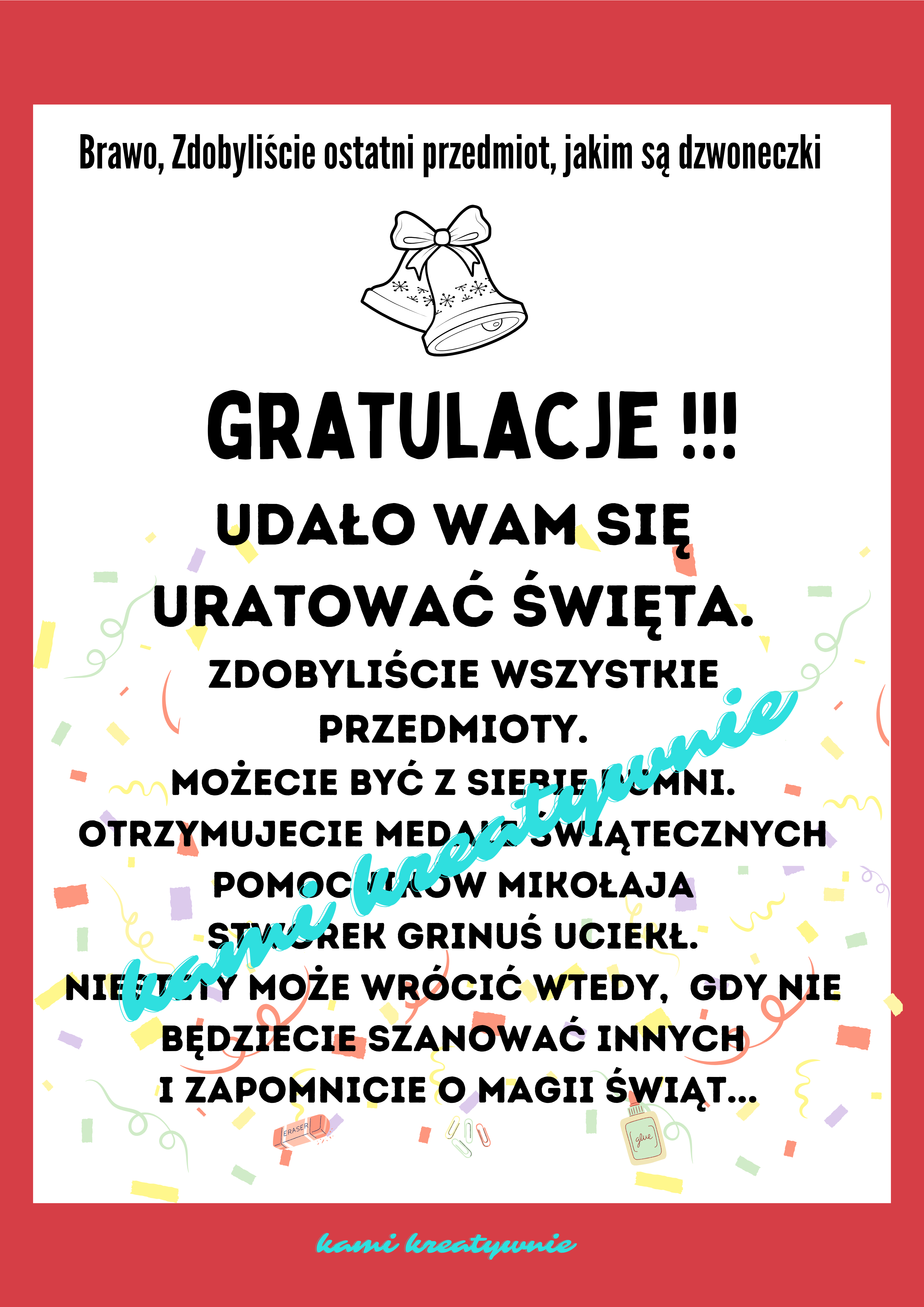 Na koniec uczniowie uzyskują medal pomocnika Mikołaja.