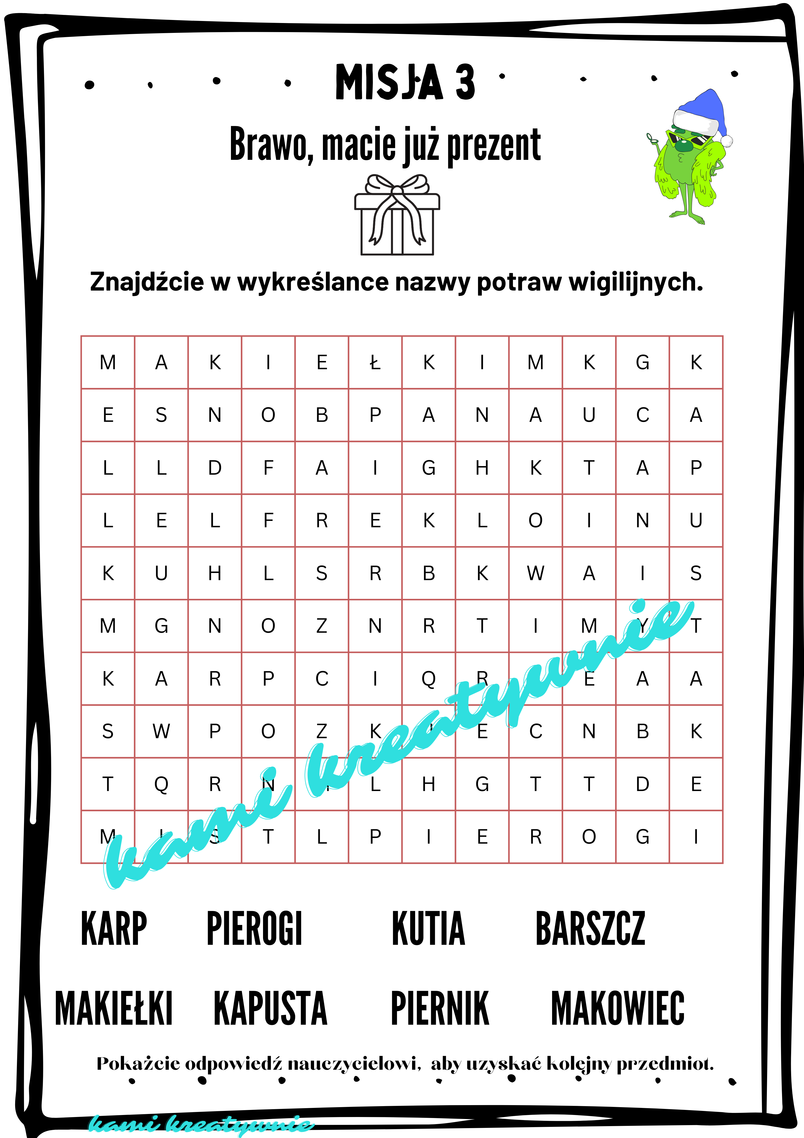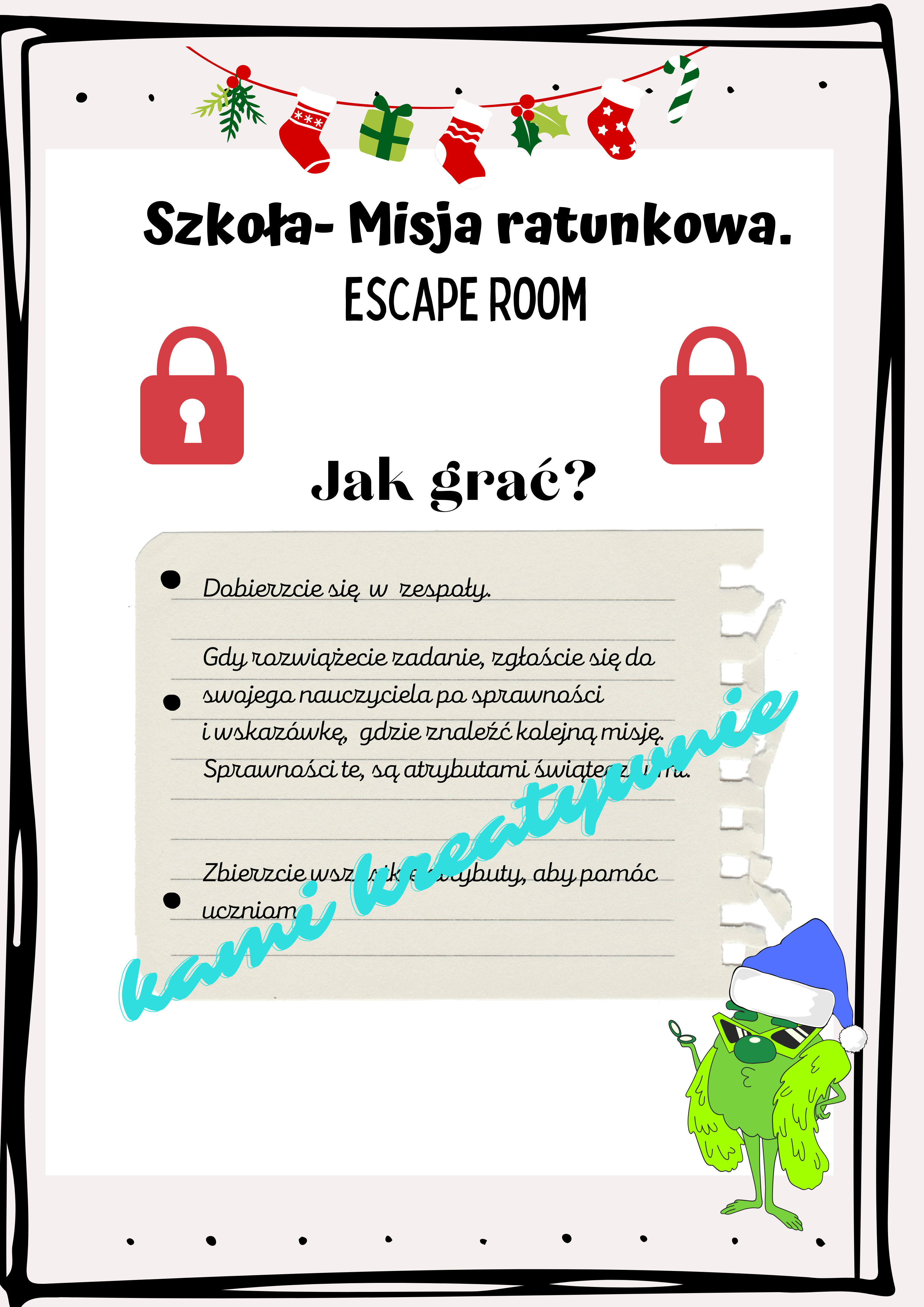 Jest to świetna zabawa dla całej klasy, idealna na ostatnią lekcję przedświąteczną. Escape room dedykowany jest dla klasy 1