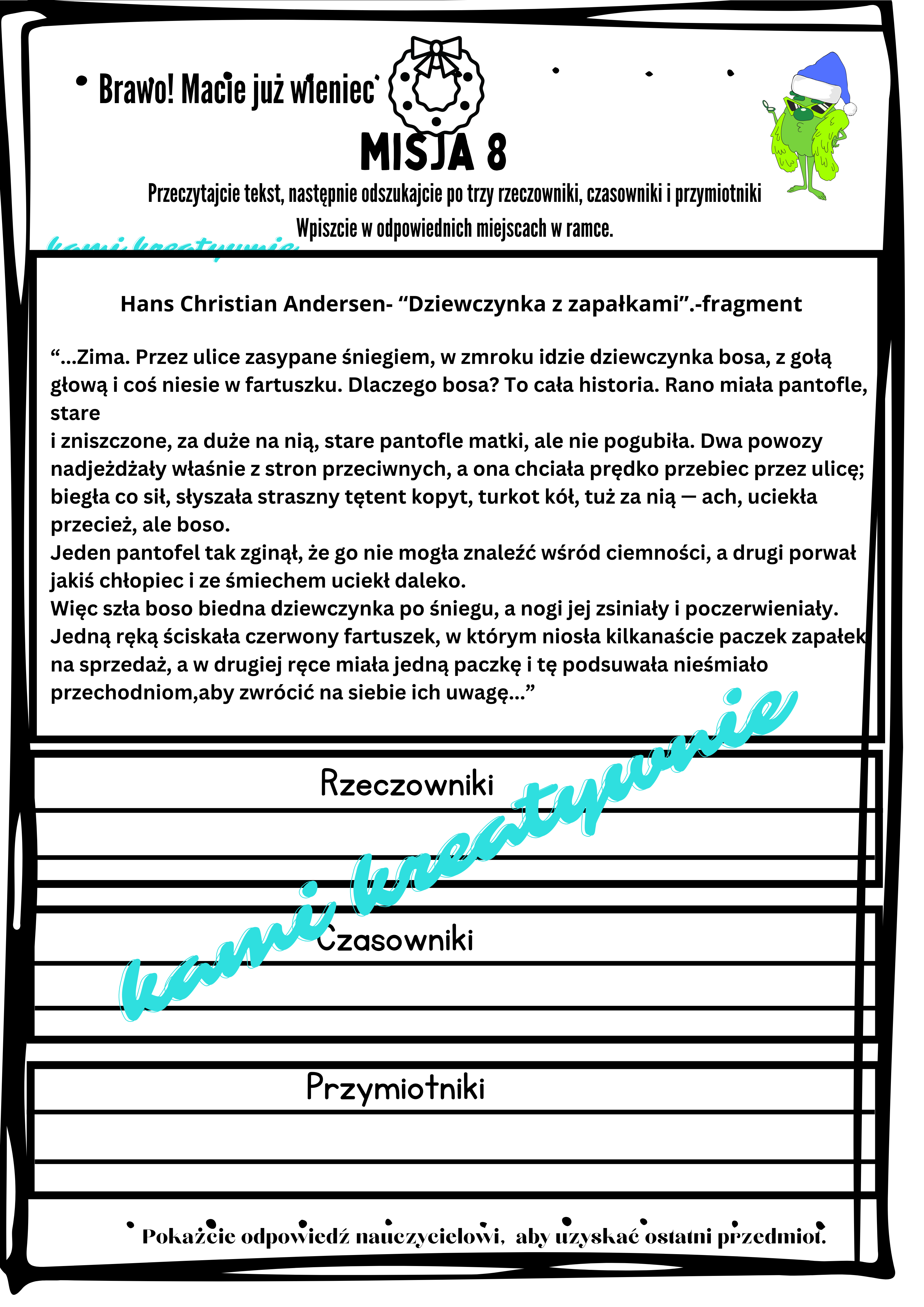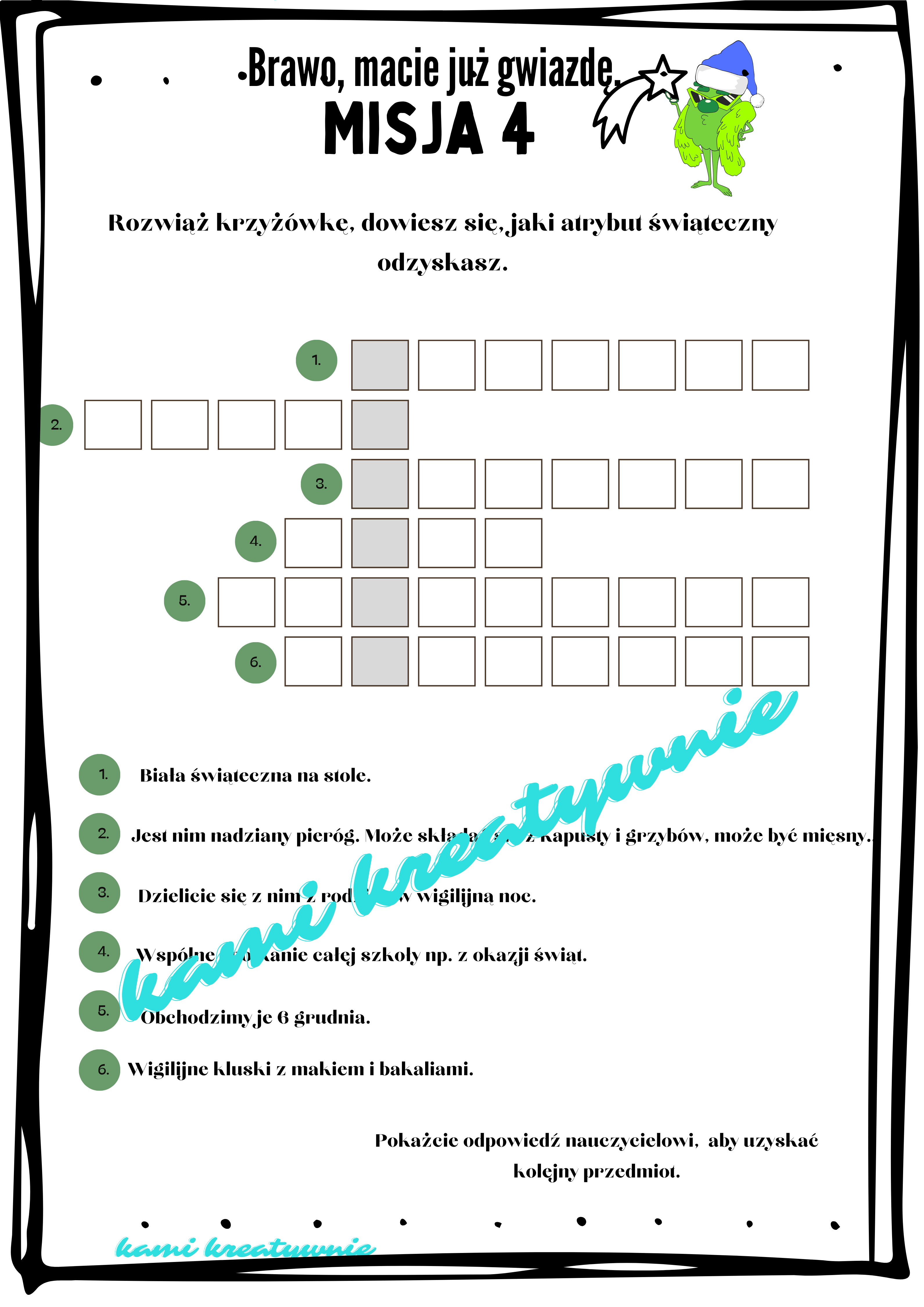 Jest to świetna zabawa dla całej klasy, idealna na ostatnią lekcję przedświąteczną. Z zadaniami poradzą sobie uczniowie klas 2 i 3.