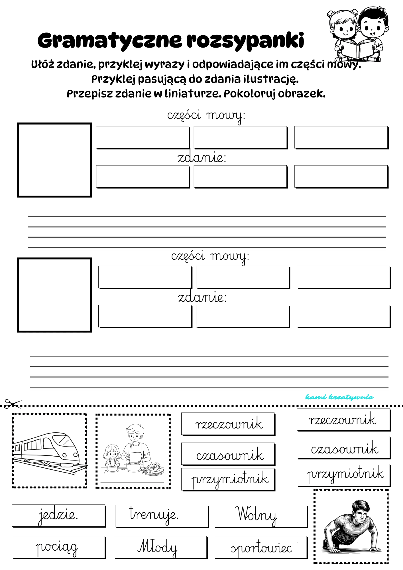 Gramatyczne rozsypanki” to ćwiczenia stworzone po to, aby dziecko aktywnie rozwijało kluczowe umiejętności językowe.
