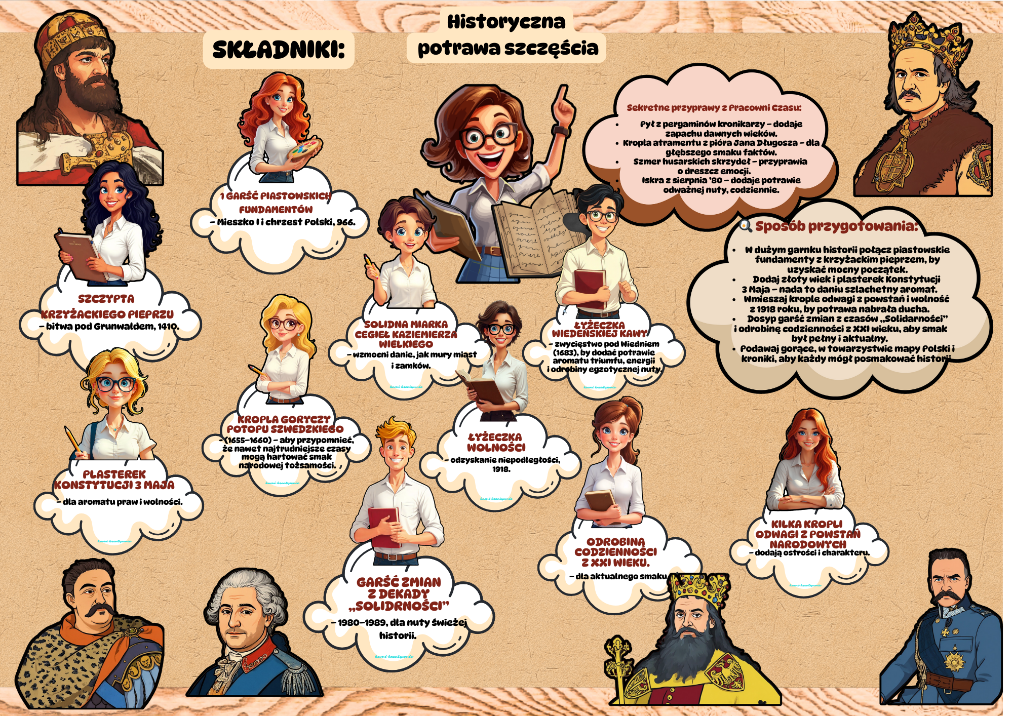 Wyjątkowa gazetka, która zamienia najważniejsze wydarzenia z historii Polski w kulinarno-magiczny przepis! 🥣✨