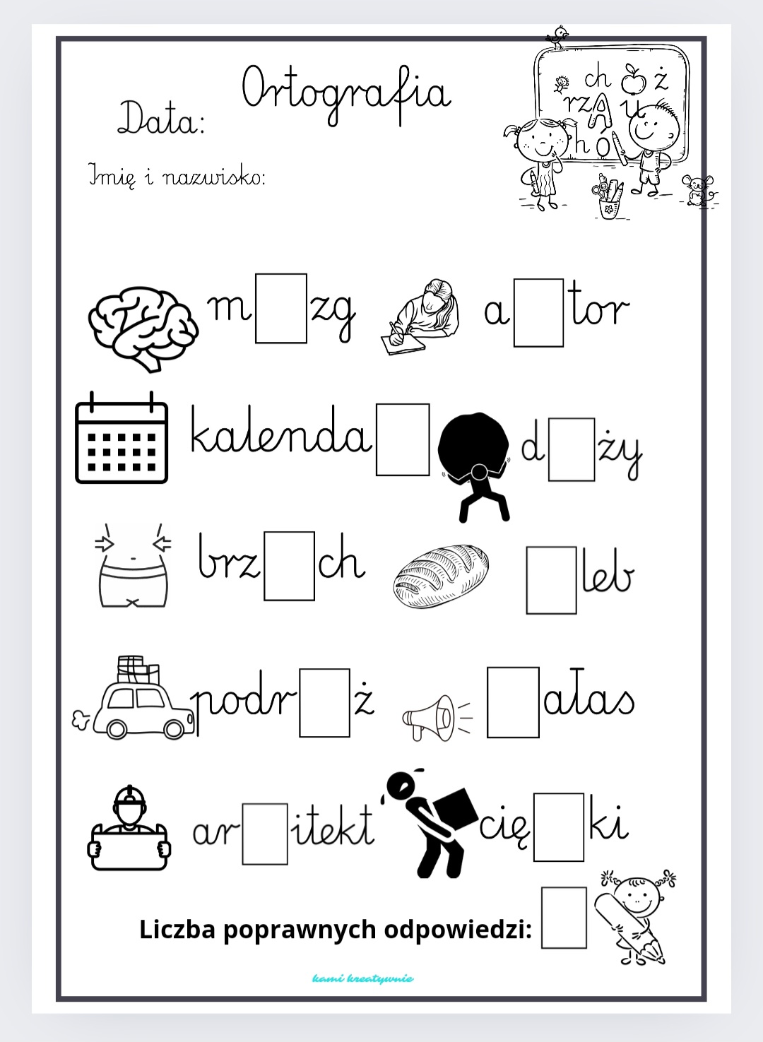 32 karty różnicujące z : ó, u, rz, ż, ch,h