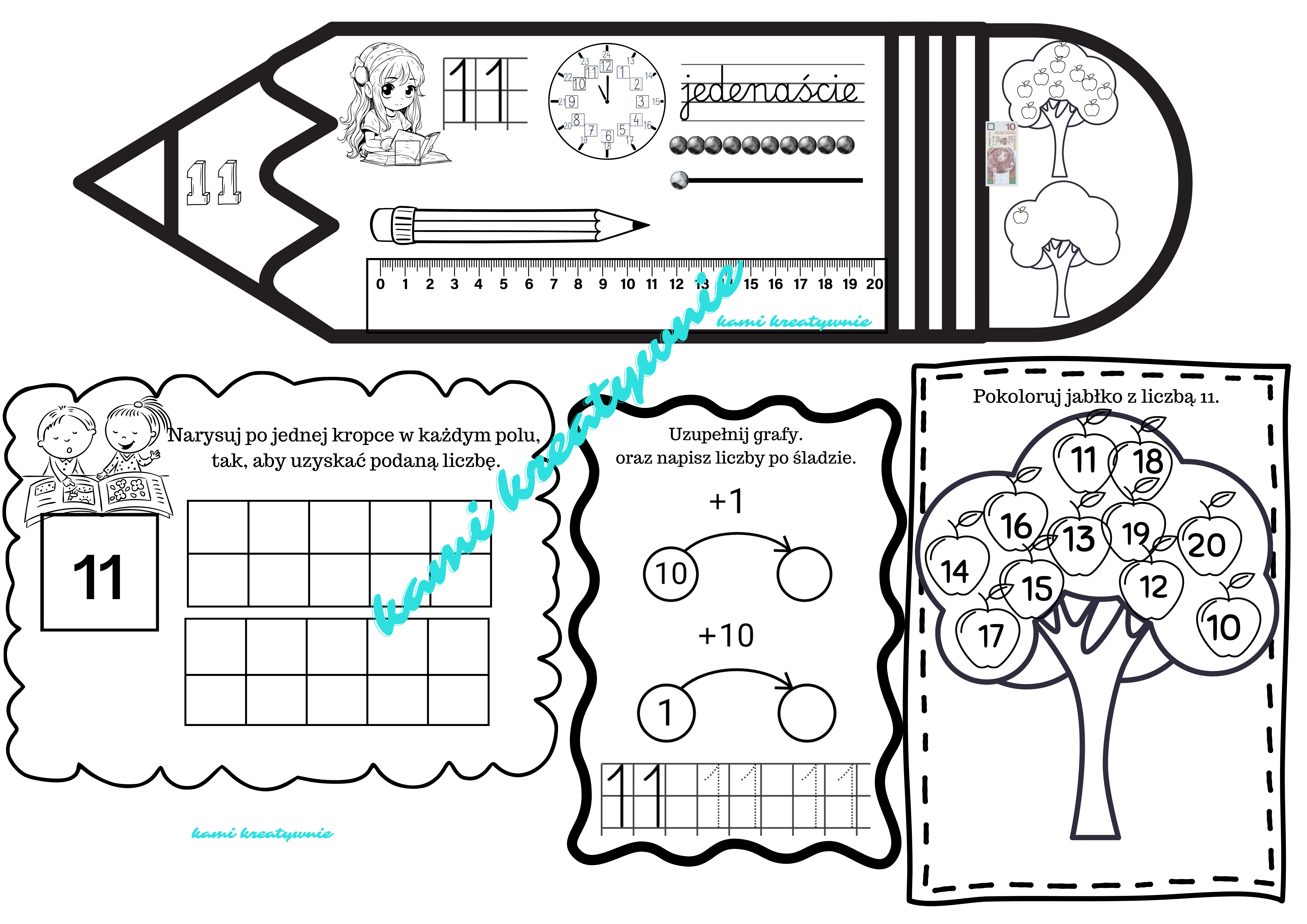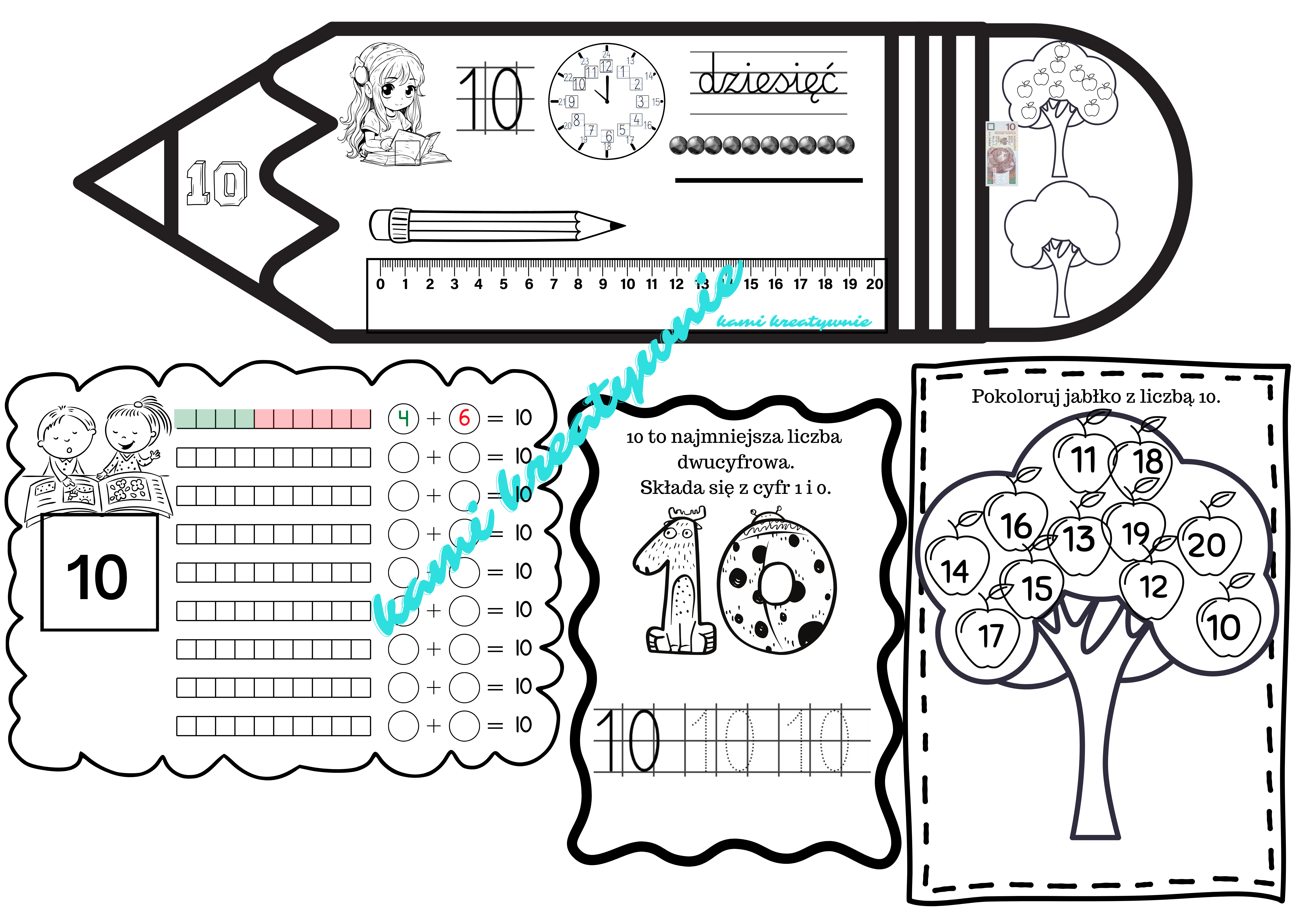 W materiale znajdziesz komplet wklejek do wprowadzania liczb 10-20
