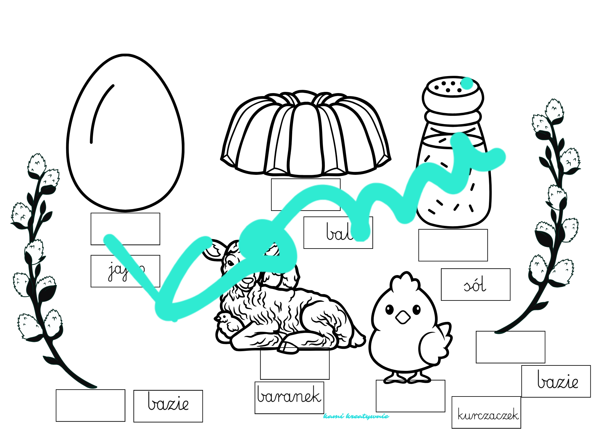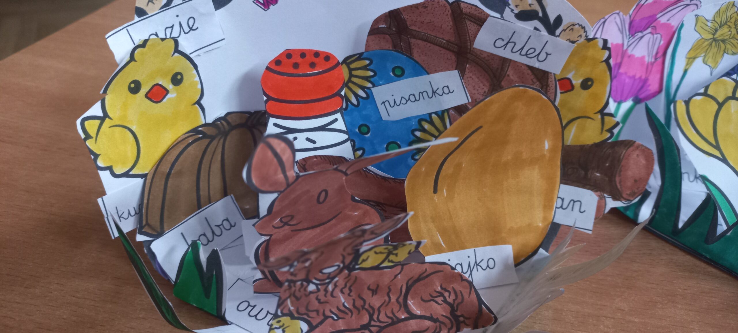 W materiale znajdziecie 2 koszyczki do złożenia i wklejenia odpowiednich symboli