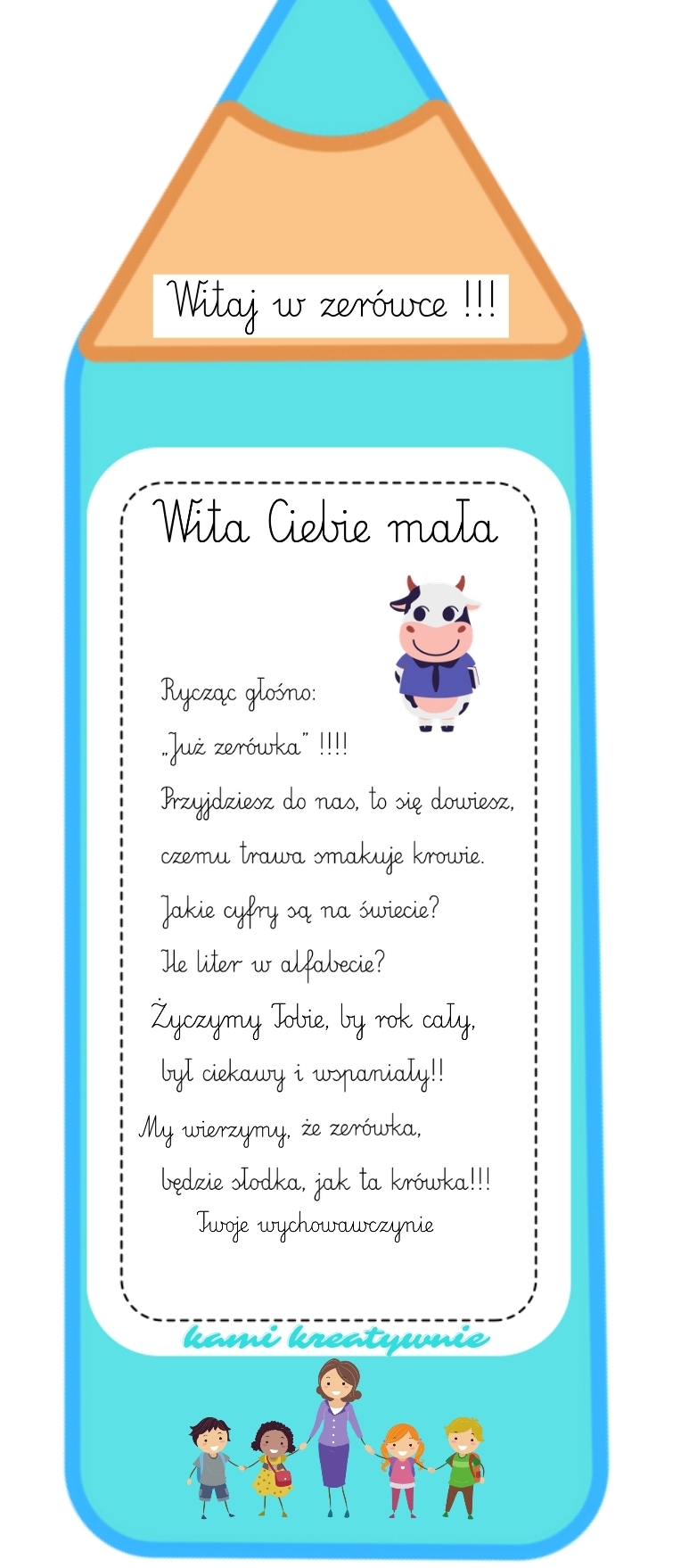 W materiale znajdziesz zakładki krówki z moimi autorskim wierszami, do przedszkola inny i do zerówki też inny.