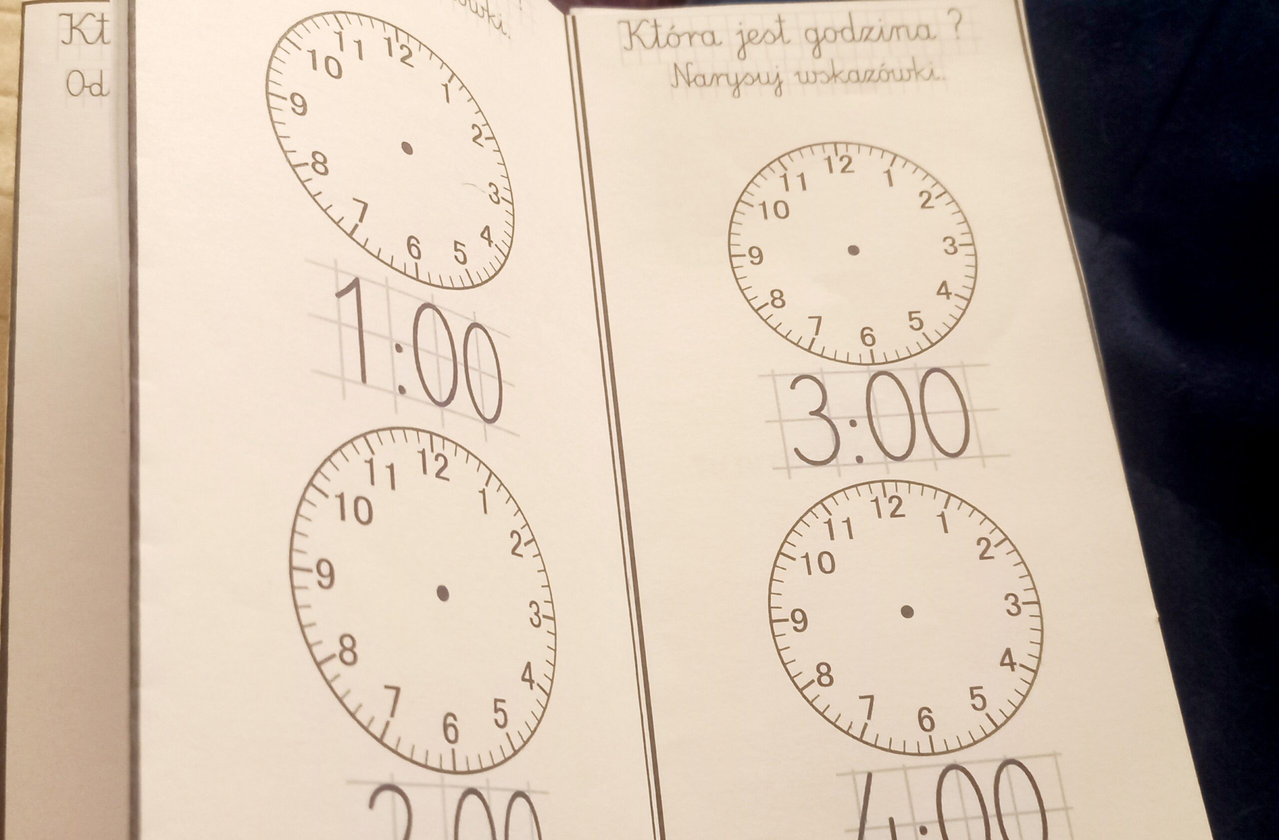 Dwa polecenia- odczytaj godzinę i zapisz oraz narysuj wskazówki.