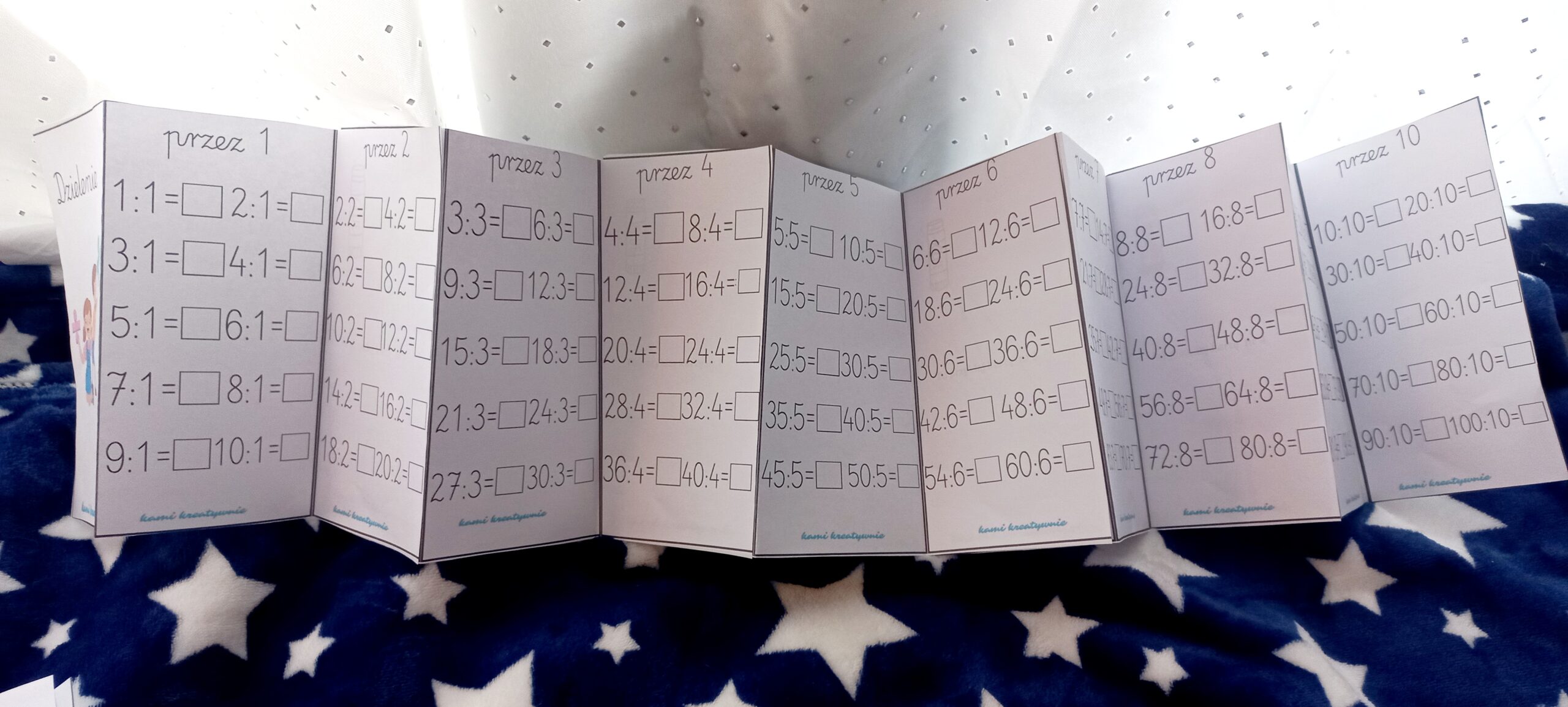 Na osobnej kartce przez każdą liczbę od 1-10