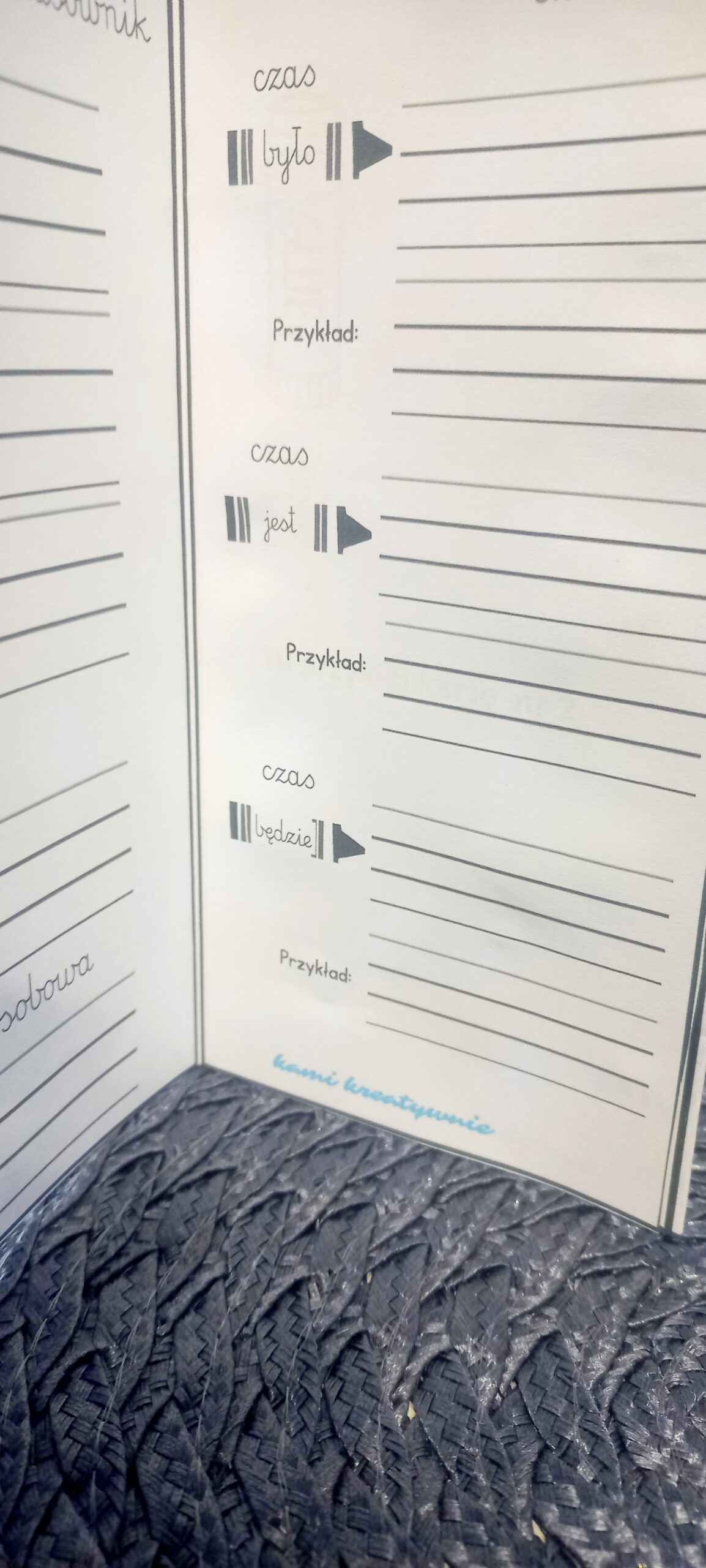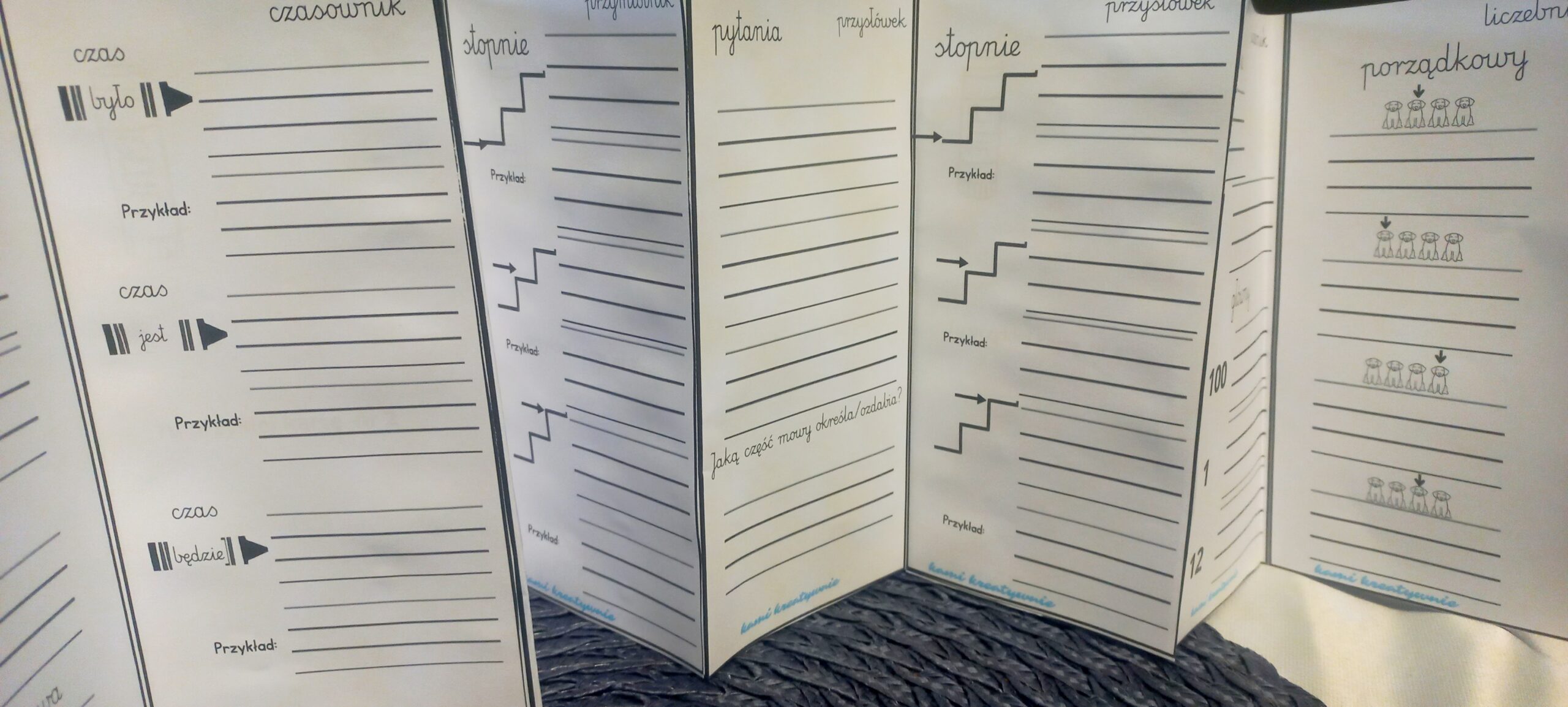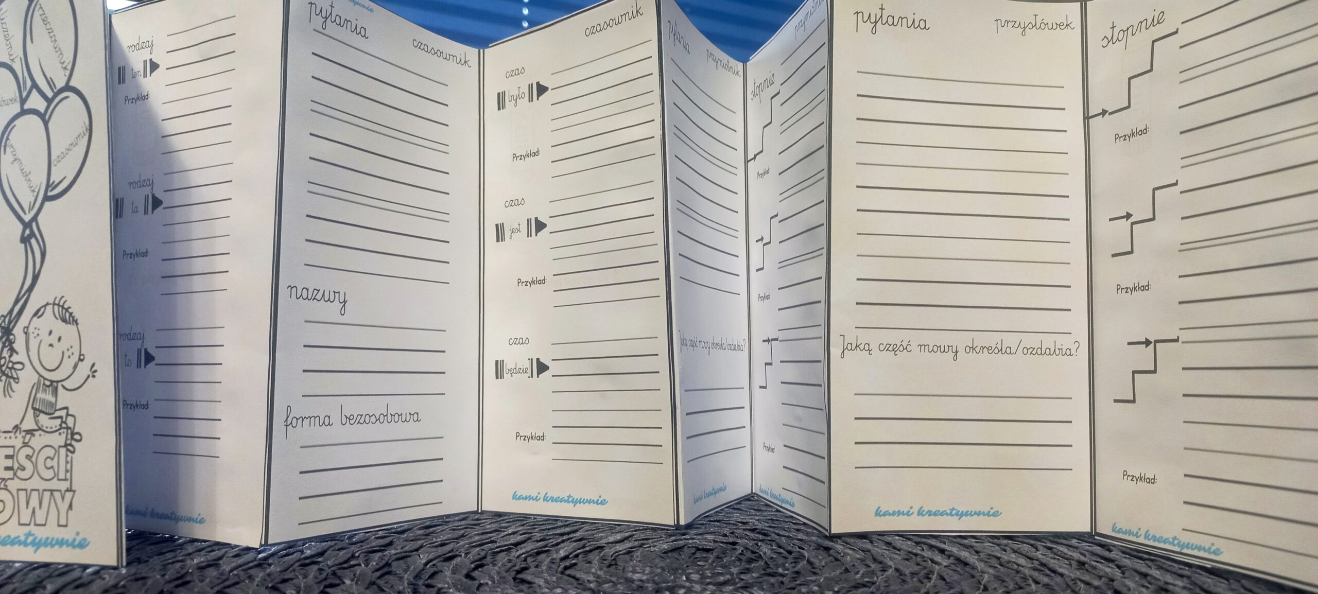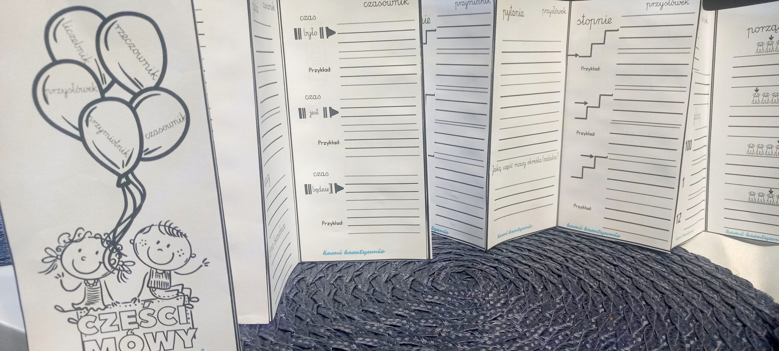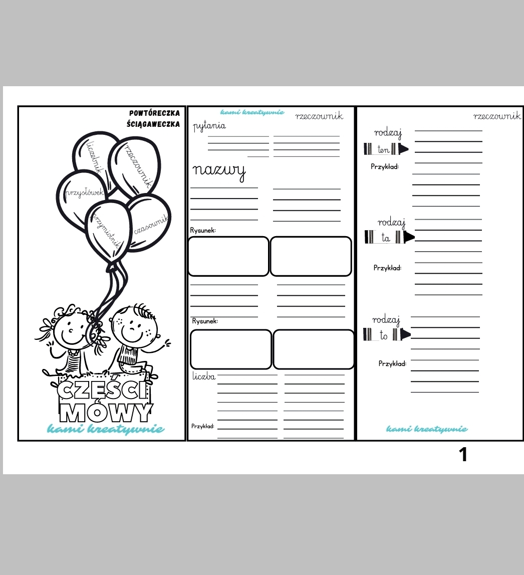 W materiale leporello powtórzeniowe z częściami mowy.
