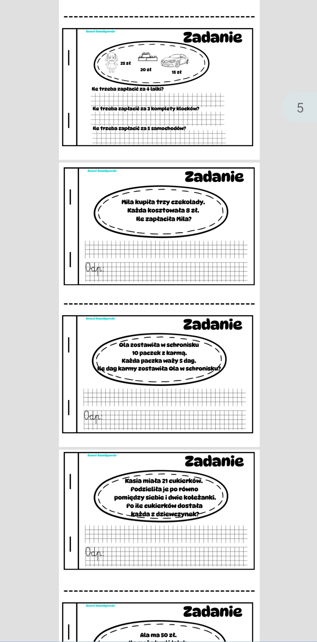 Publikacja zawiera część teoretyczną (ebook) dotyczący mnożenia i dzielenia oraz osobno dla Waszej wygody część praktyczną