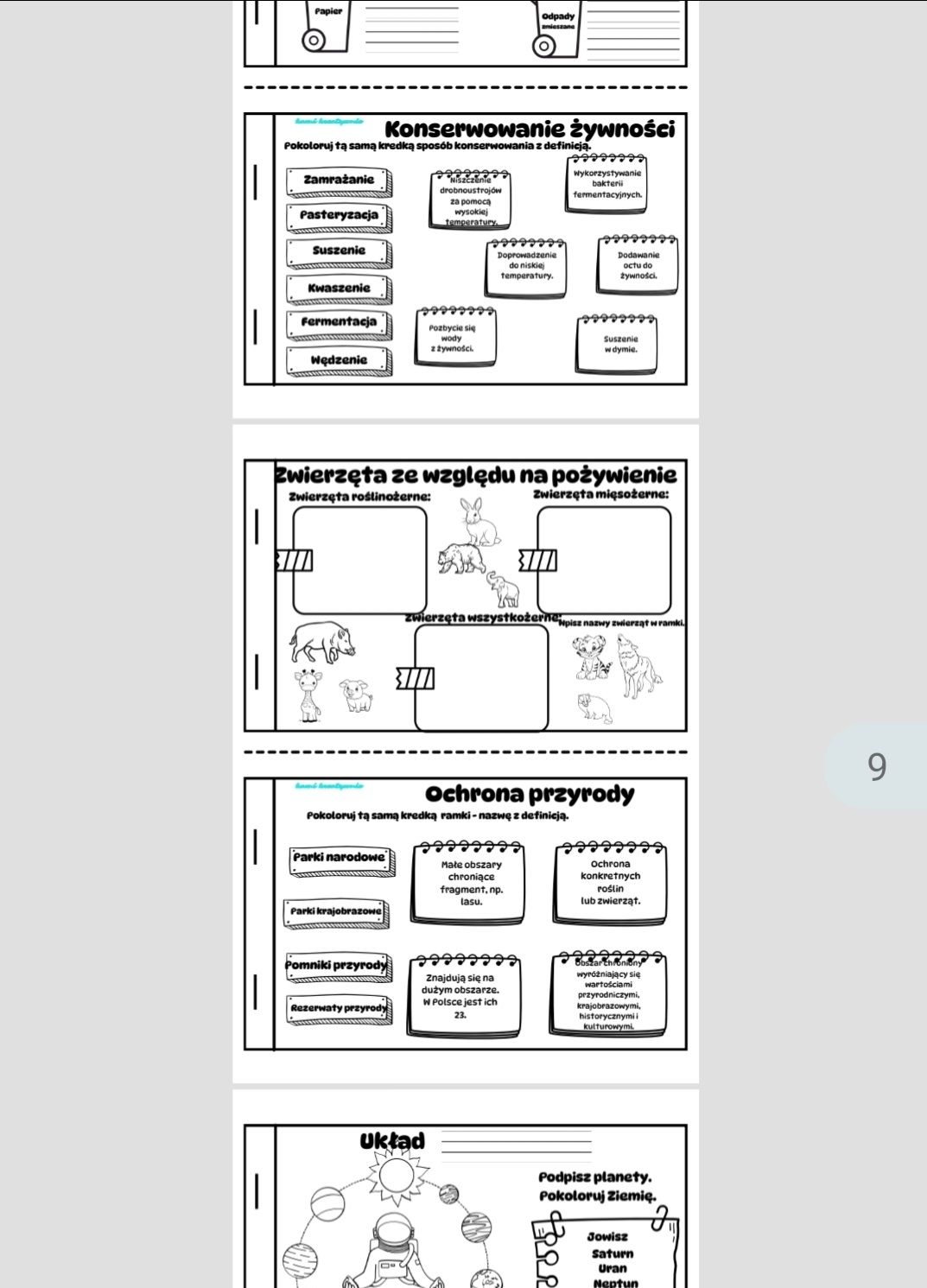 Plansze przyrodnicze a4 i wklejki a5