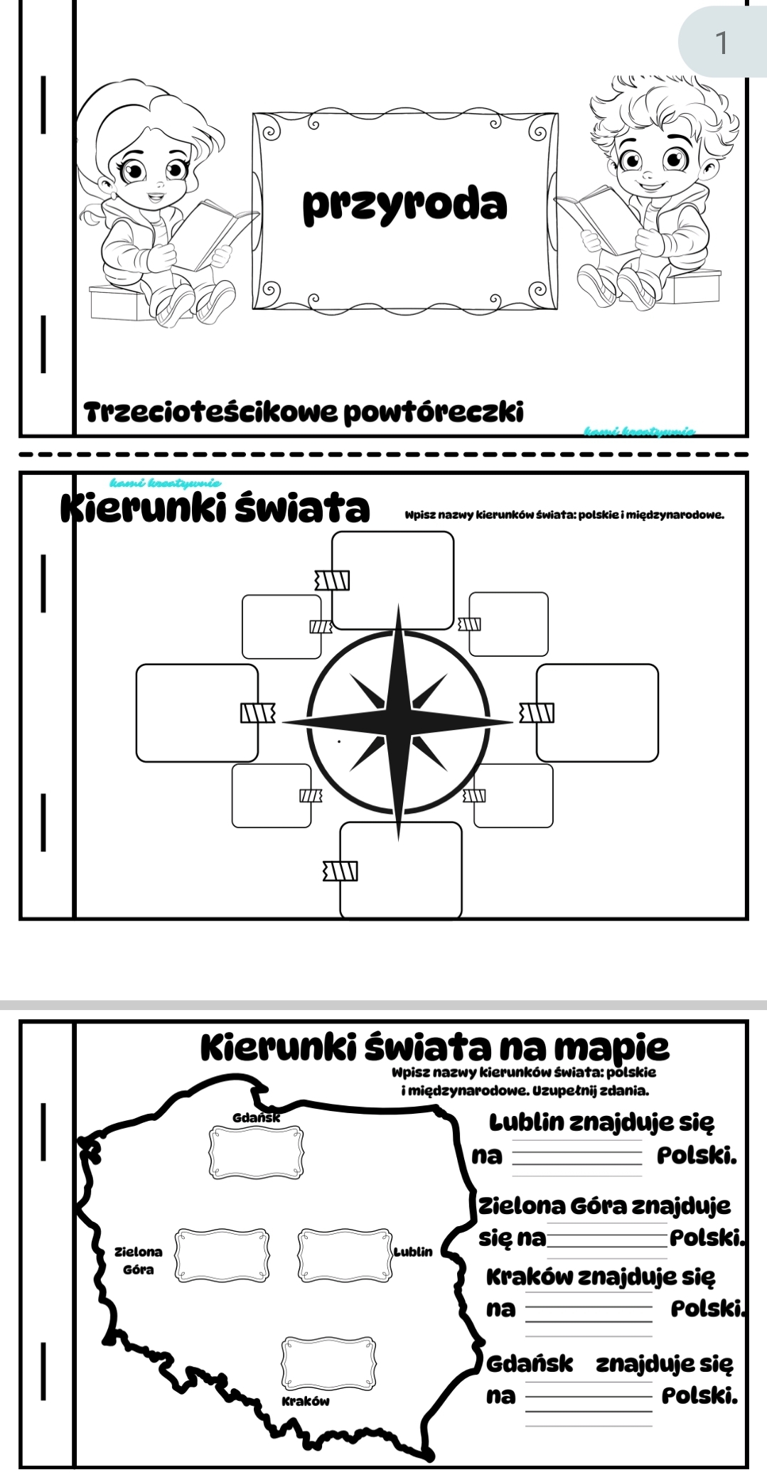 W materiale 41 powtórek (w formacie a5) z przyrody Jedna powtóreczka na dzień. Są też doskonałym materiałem wprowadzającym dla klasy 2.