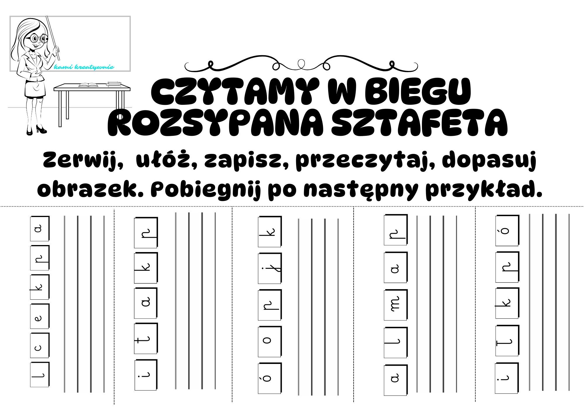 Przygotowałam sztafetę wyrazową dla klasy 1 – idealną do utrwalania pisania, czytania, pracy w grupach i rozruszania dzieci po dłuższym siedzeniu.