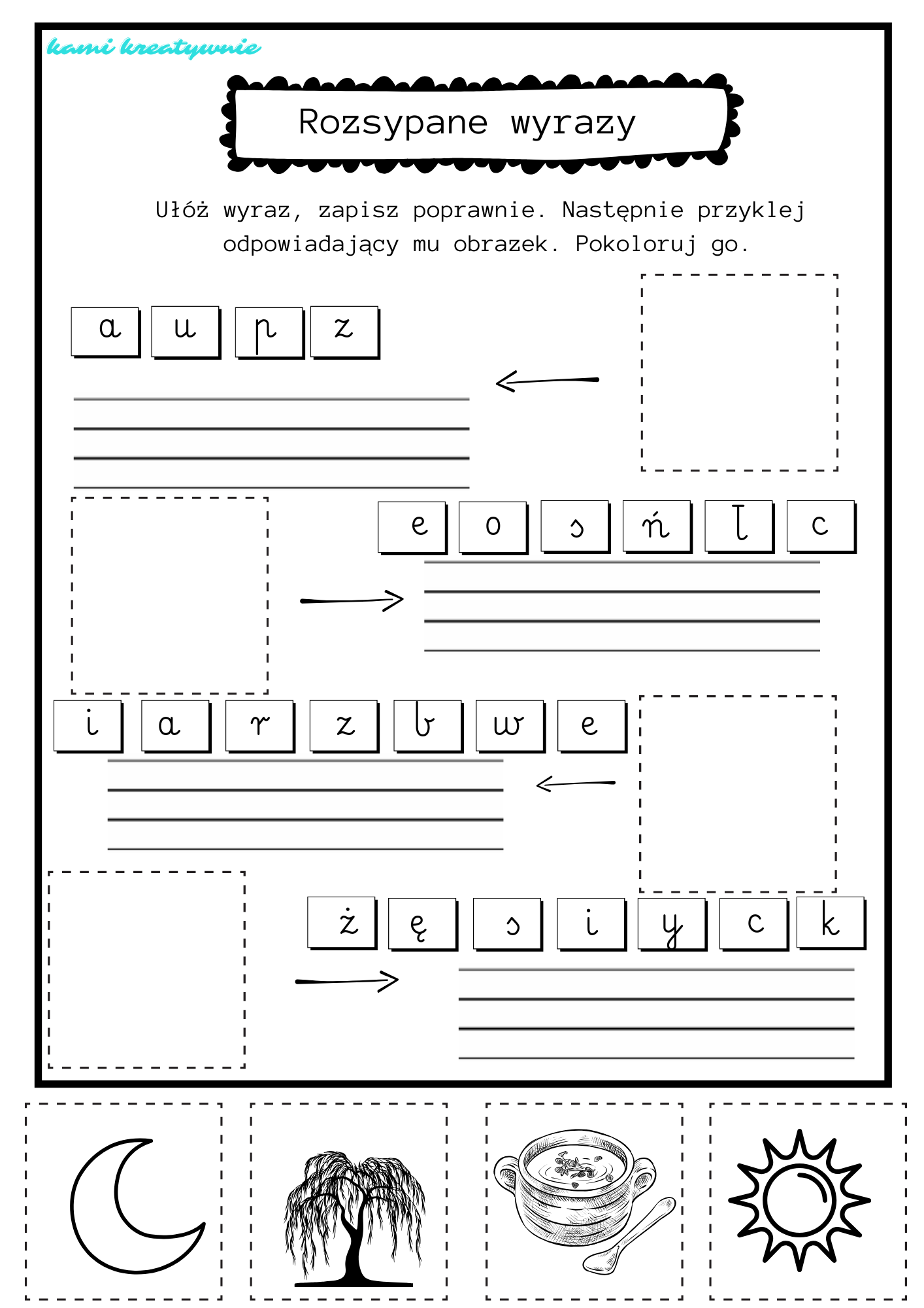 Rozsypane wyrazy to 160 przykładów anagramów na 40 kartach pracy. Ćwiczą i utrwalają wiele umiejętności: pisanie; syntezę, analizę; poszerzanie słownika oraz motorykę małą.