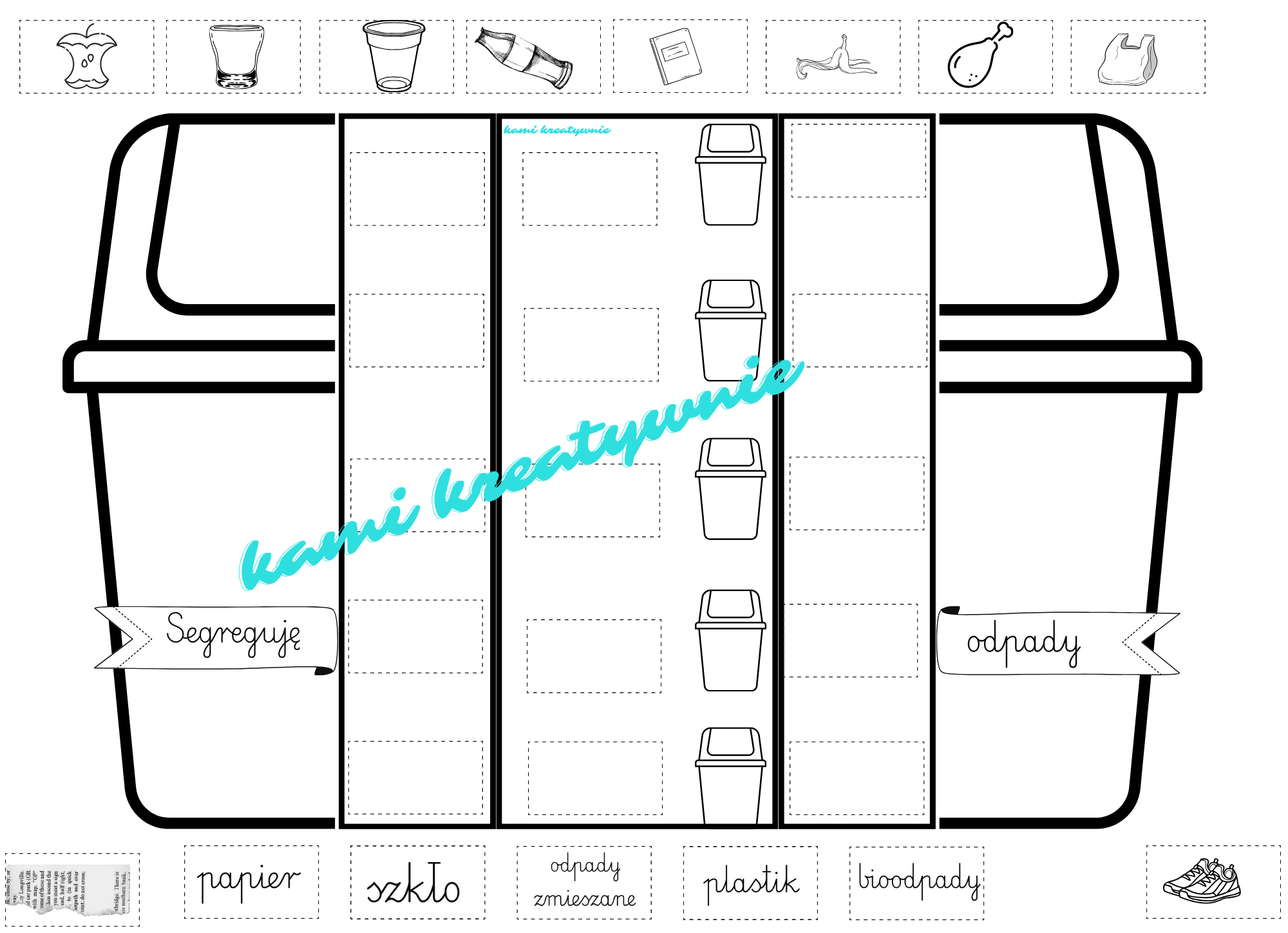 Wklejka jest składana. Do każdego kosza należy dopasować odpad.