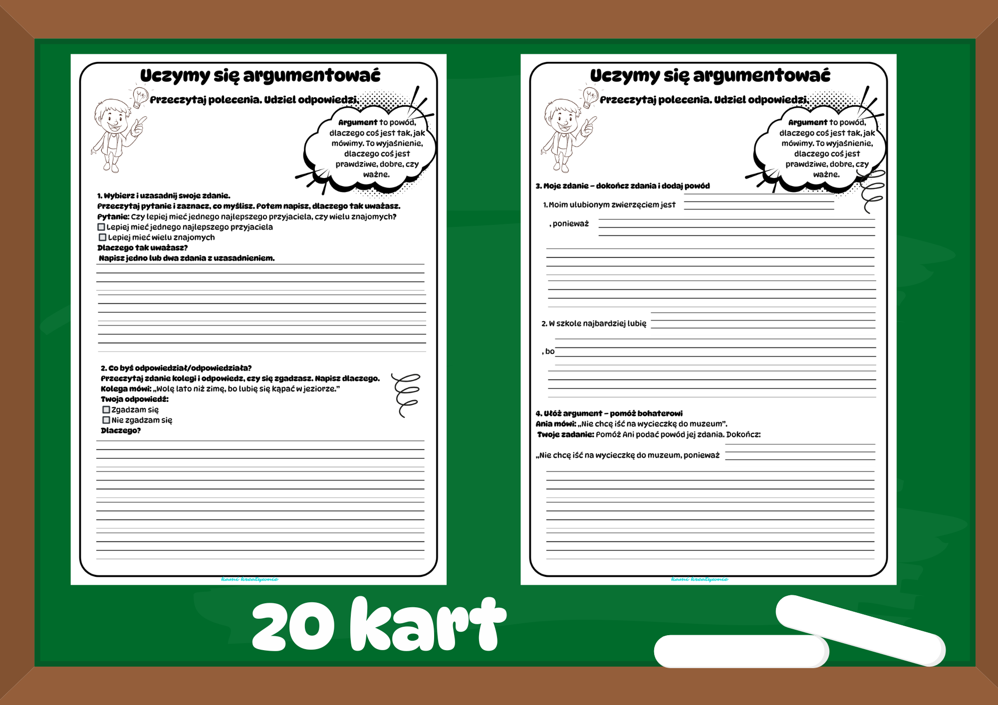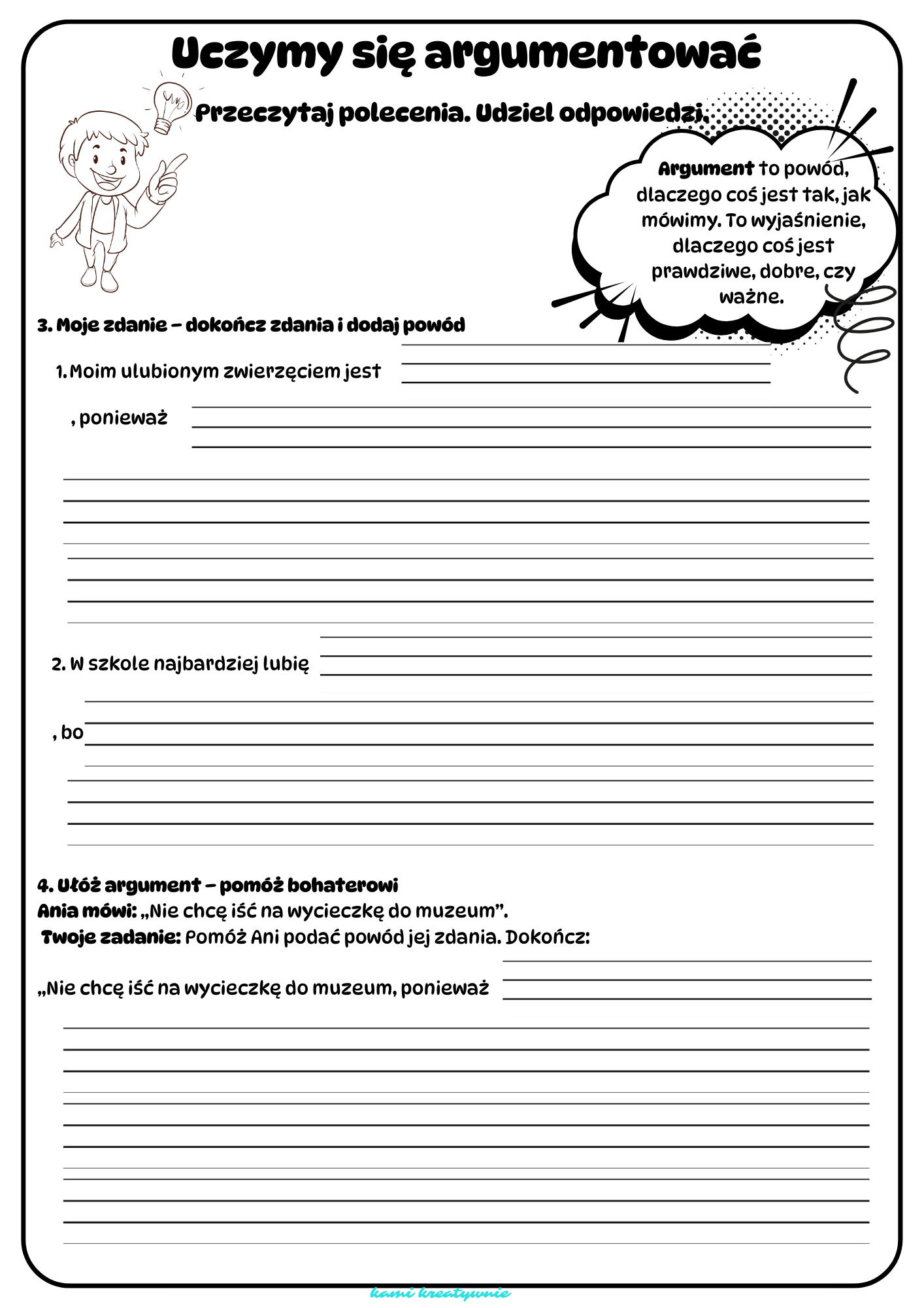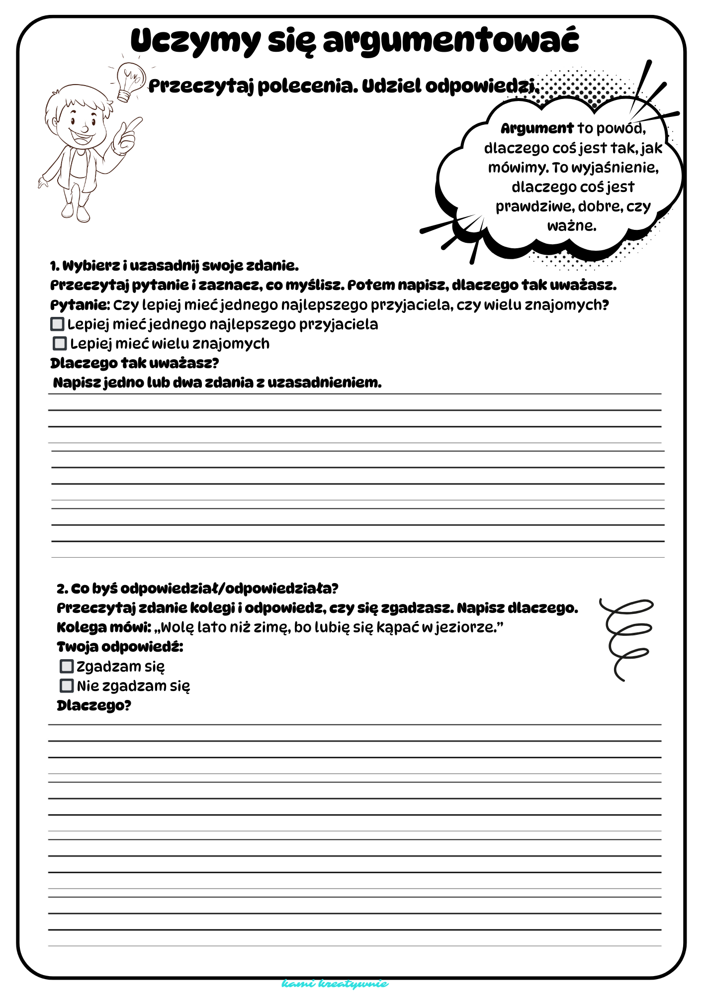 Sięgnij po  zestaw kart pracy „Uczymy się argumentować”, idealny do pracy na lekcji.