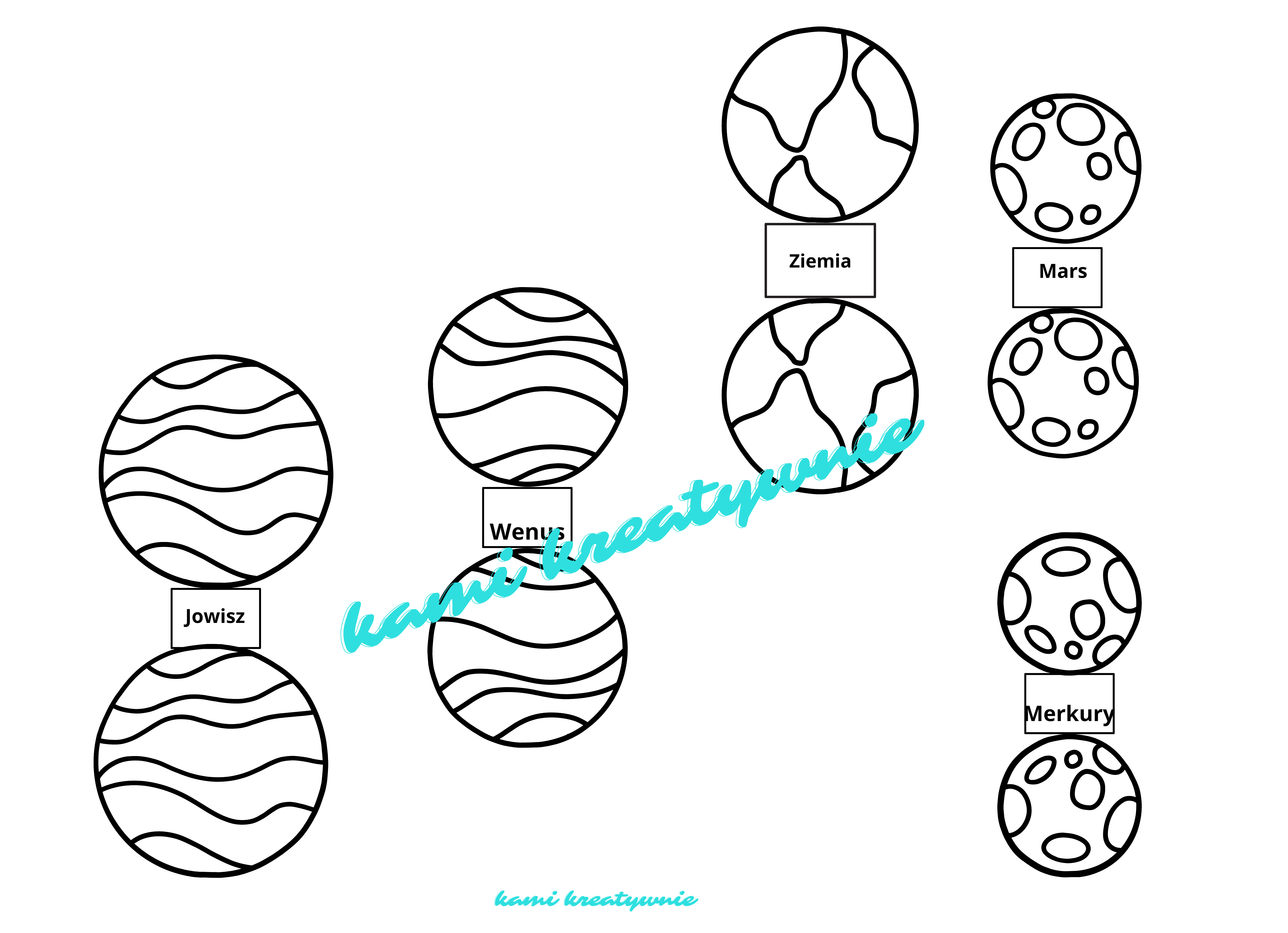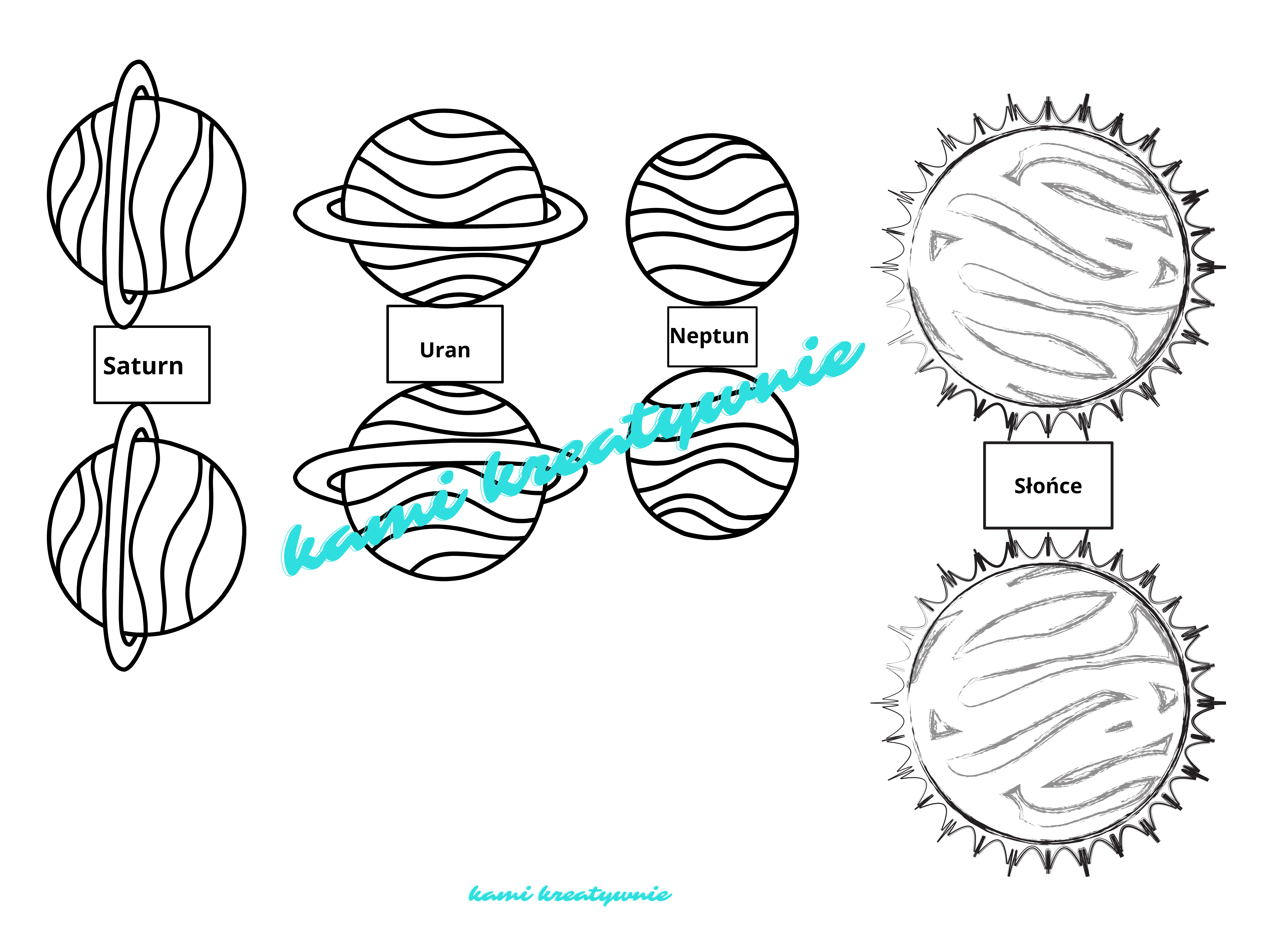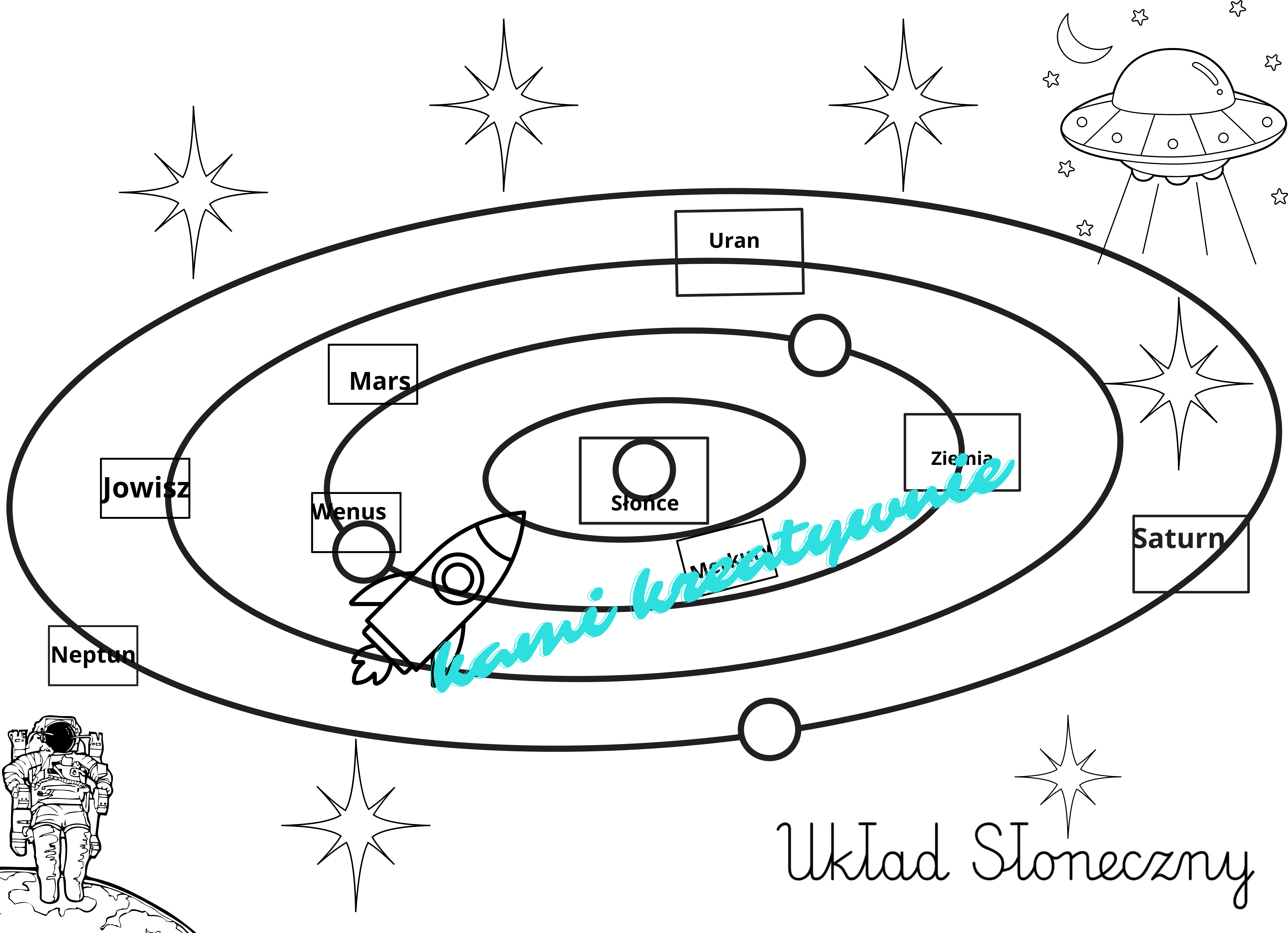 2 karty- kolorową i czarno- białą z miejscem do przyklejenia planet.