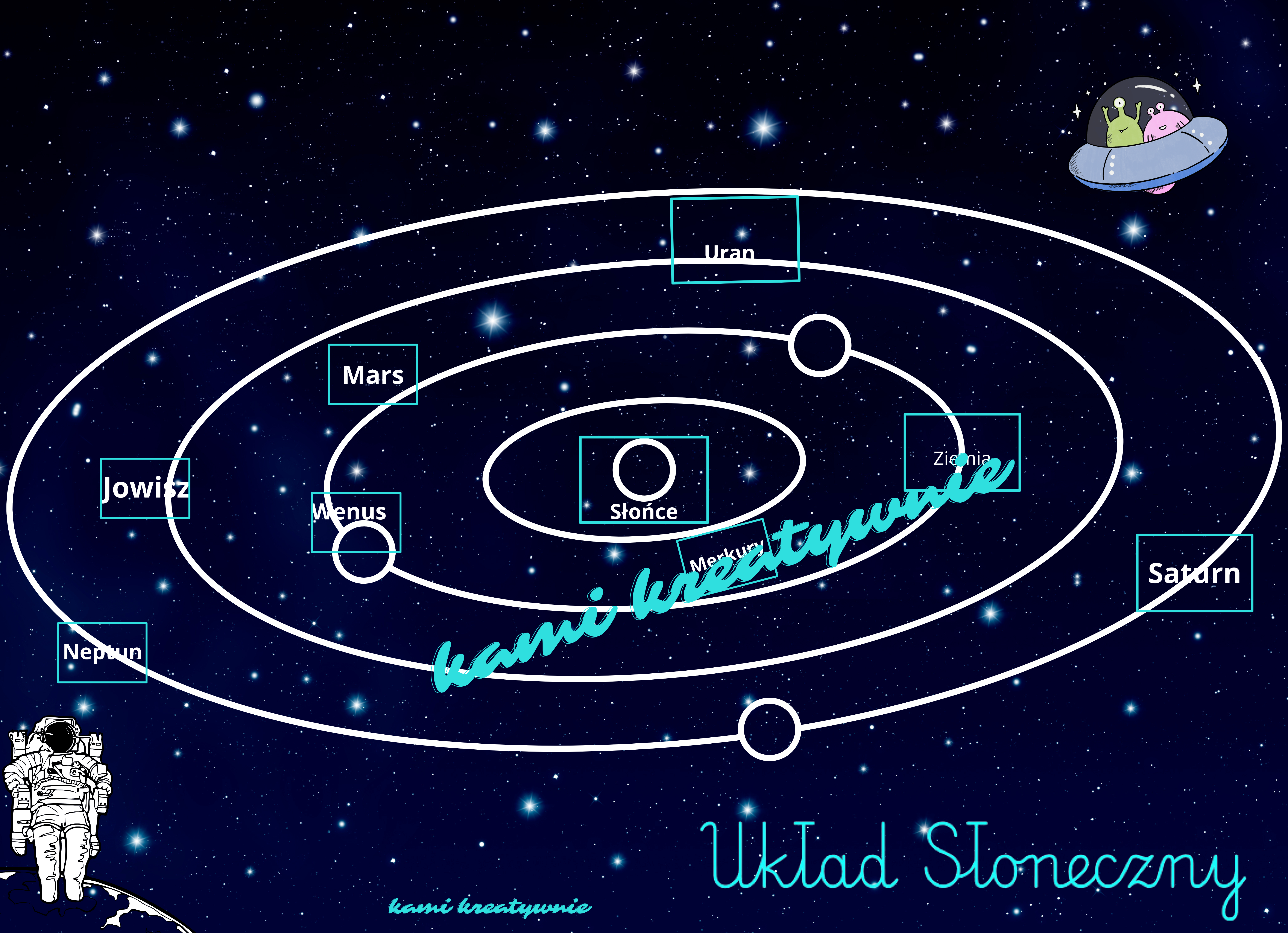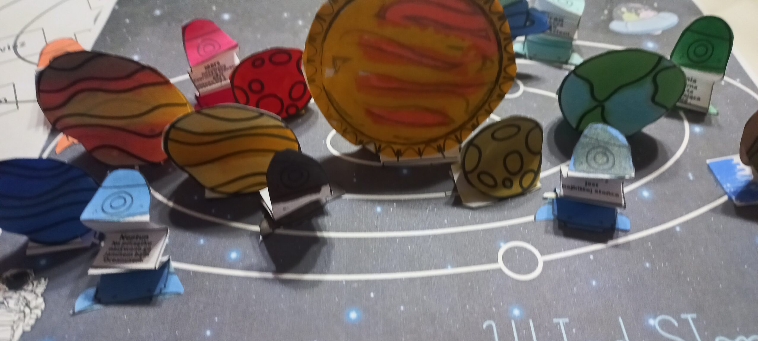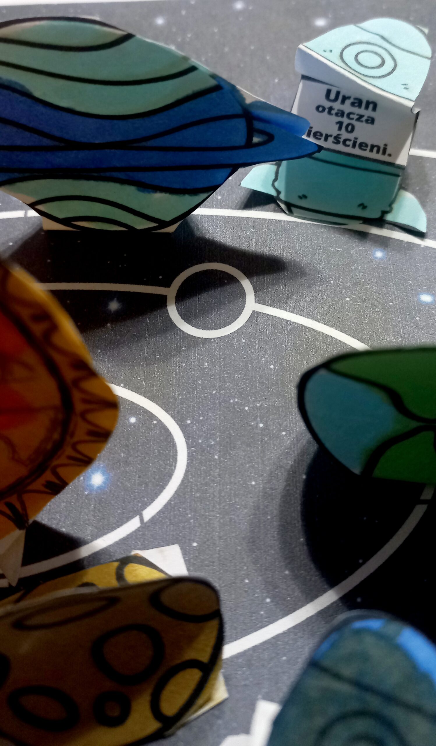 2 karty- kolorową i czarno- białą z miejscem do przyklejenia planet.