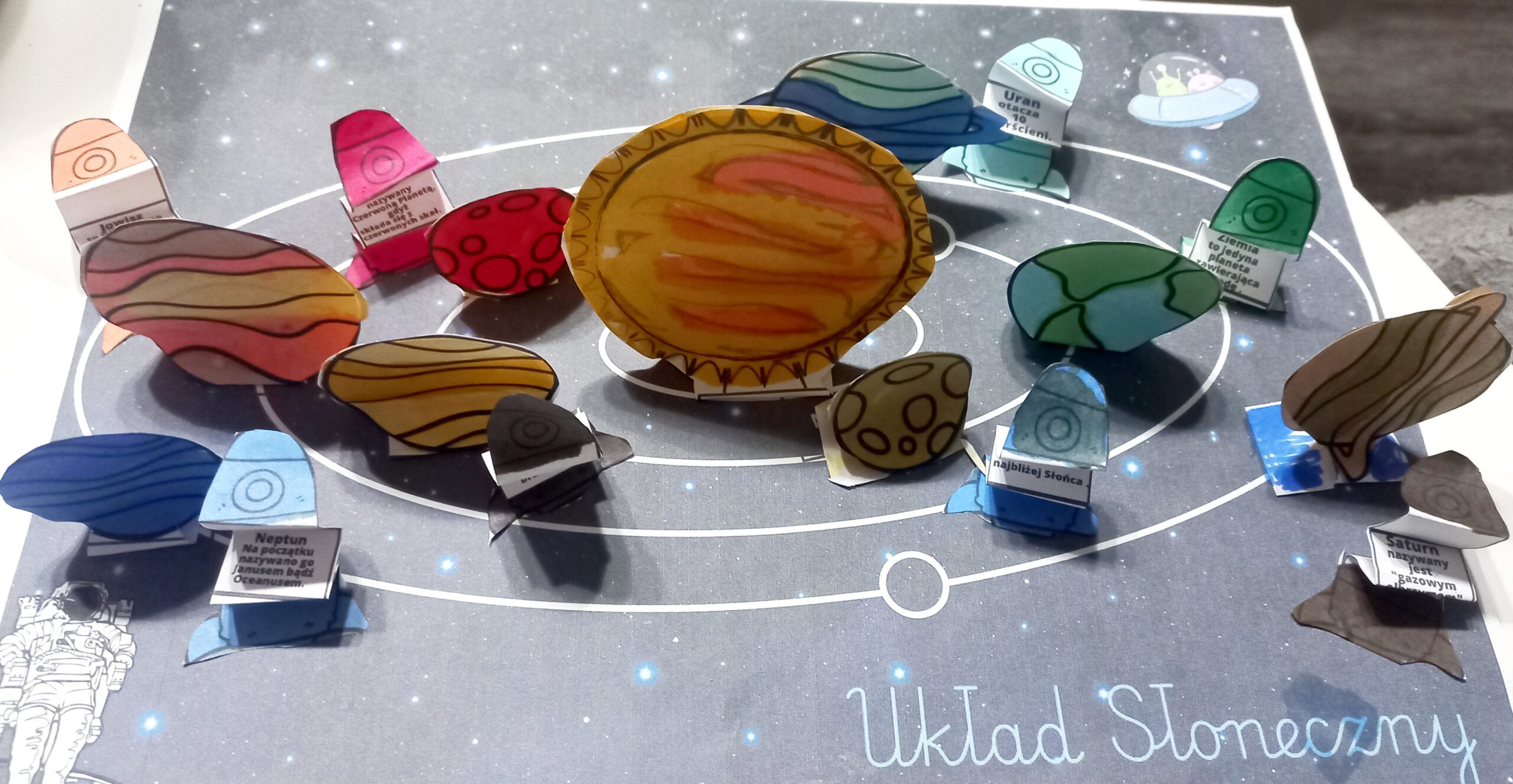 Planety Układu Słonecznego do wycięcia i sklejenia oraz rakiety z krotką informacją na temat każdej z nich.