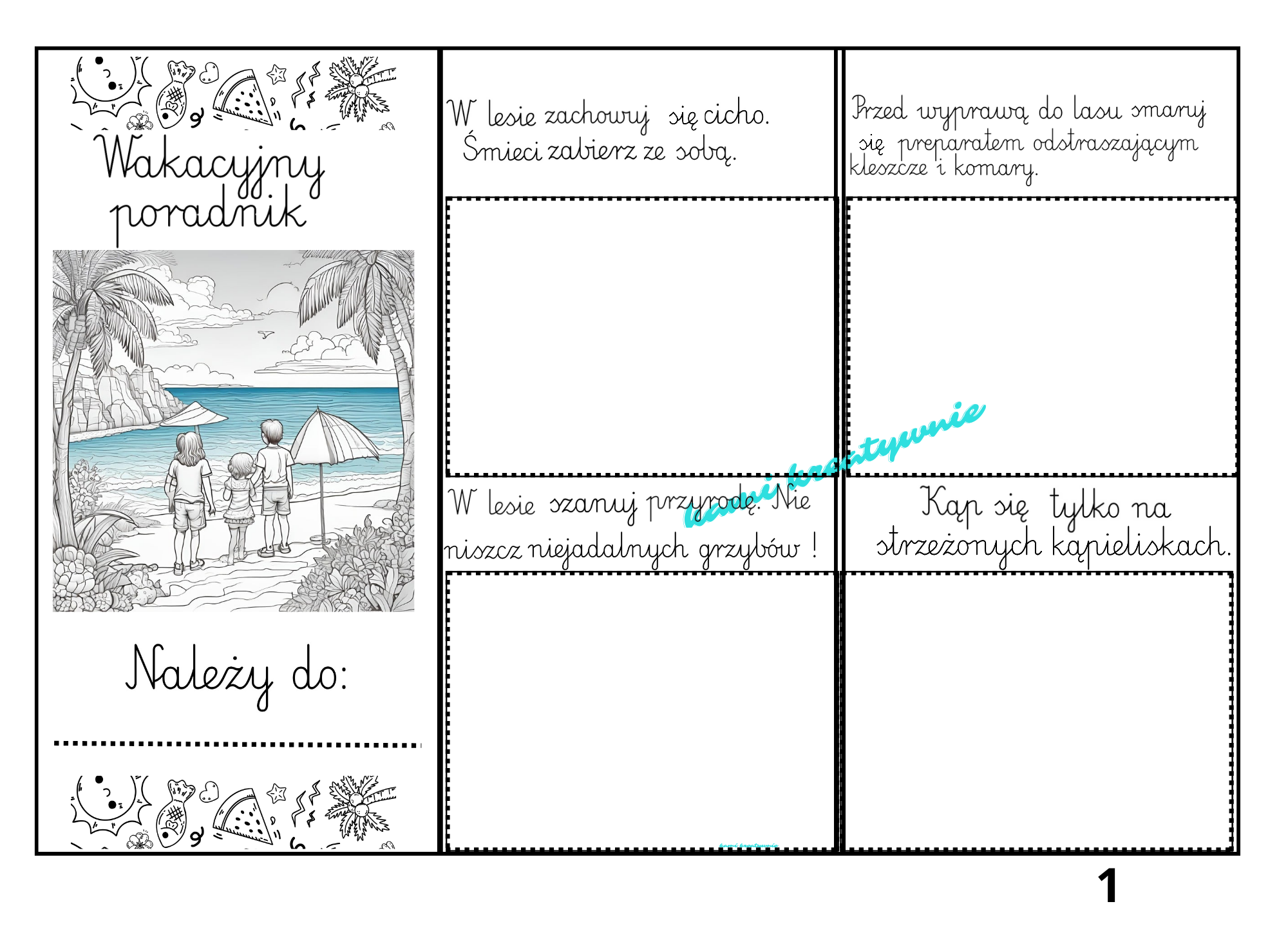 Leporello zawiera 20 zasad bezpieczeństwa podczas wakacji.