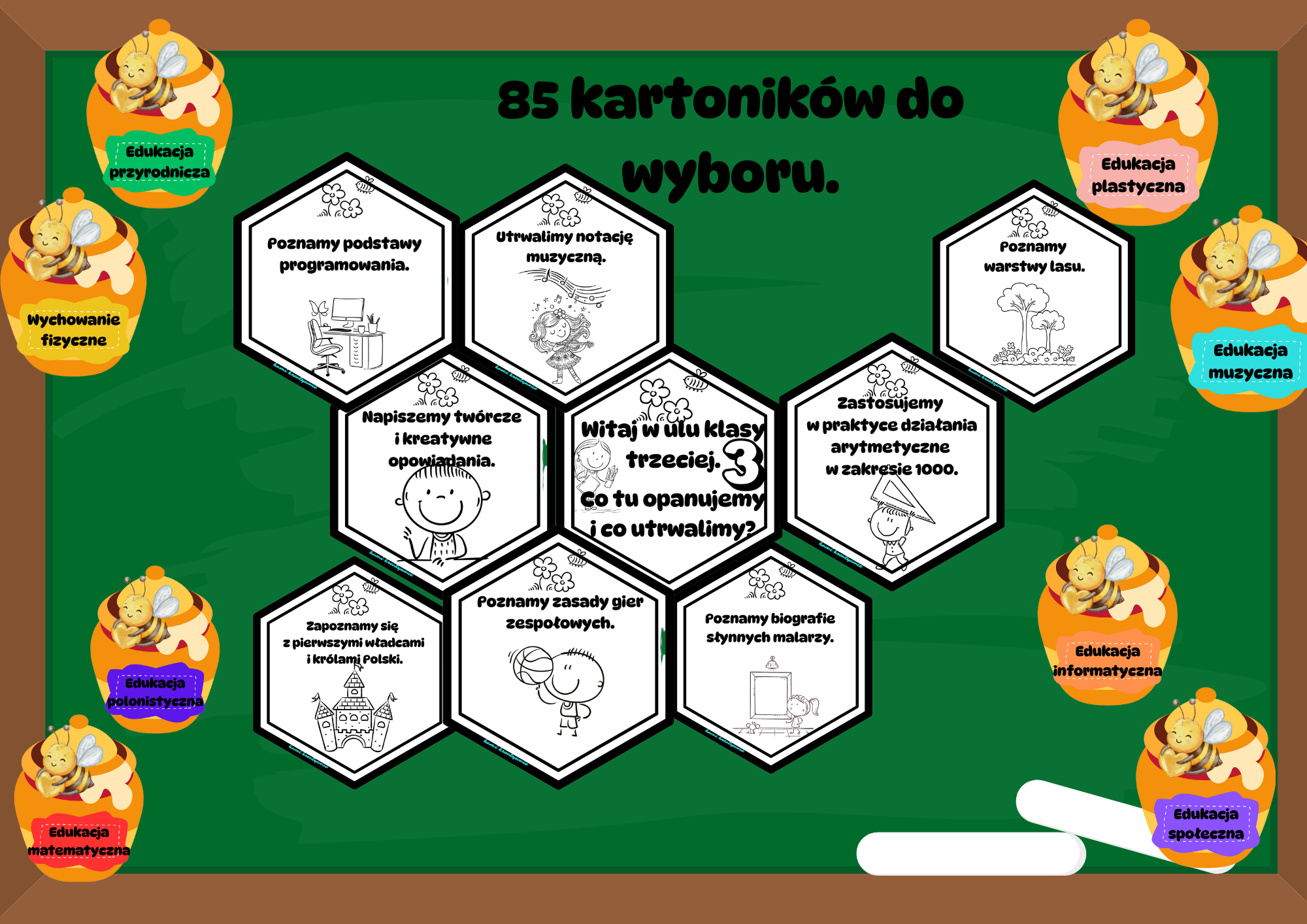 „Ul klasy trzeciej” – 85 kartoników do twórczej pracy i dekoracji klasy! 🍯