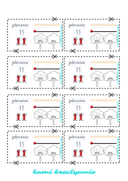 W materiale wklejki z liczbami 10 – 20 plus wklejka 10 jako najmniejsza liczba dwucyfrowa