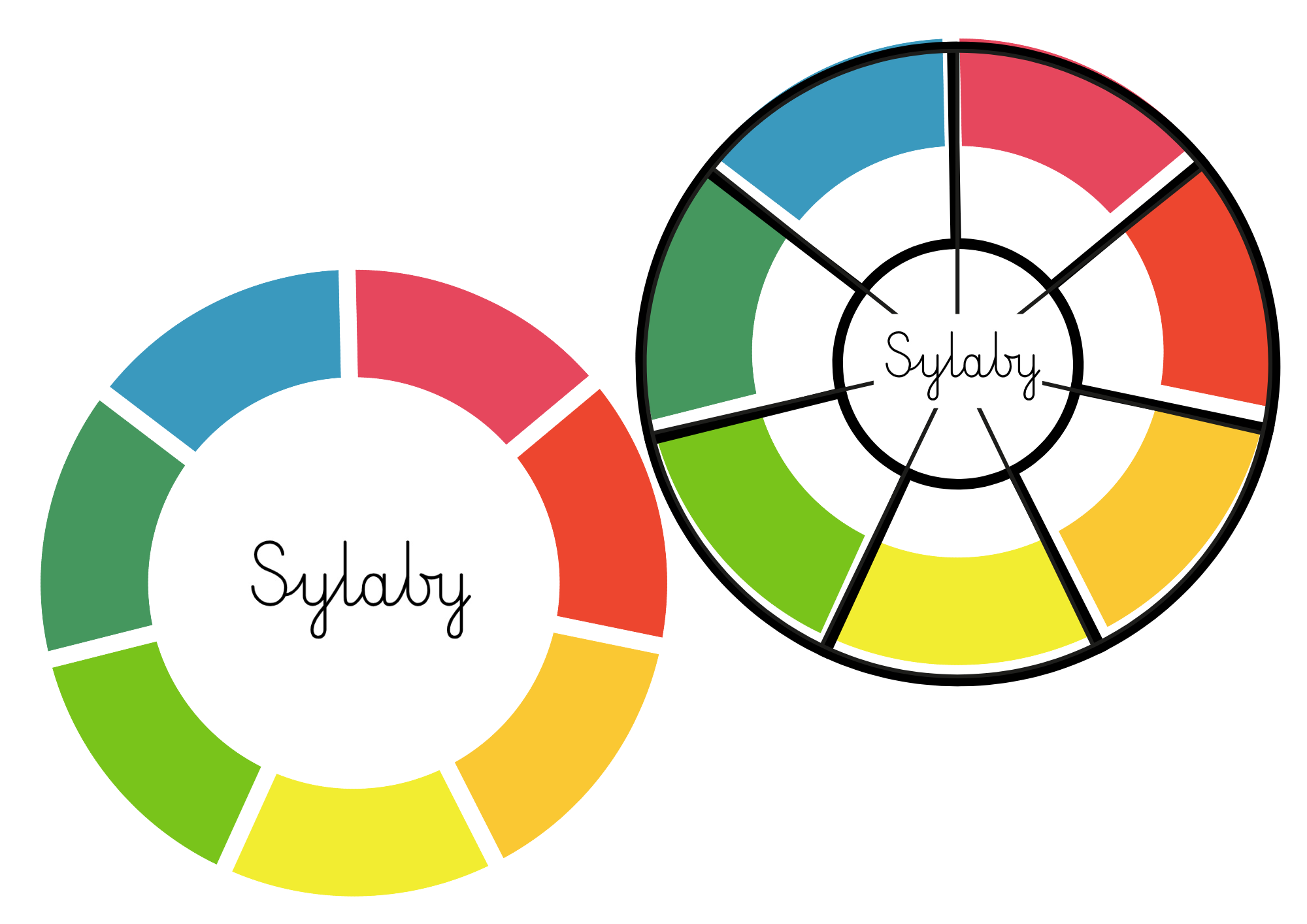 Dodatkowo możecie do każdej wklejki dołożyć następną z napisem „sylaby”. Ją doklejamy na spód i w każdej rameczce dziecko rysuje tyle kresek ile dany wyraz ma sylab.